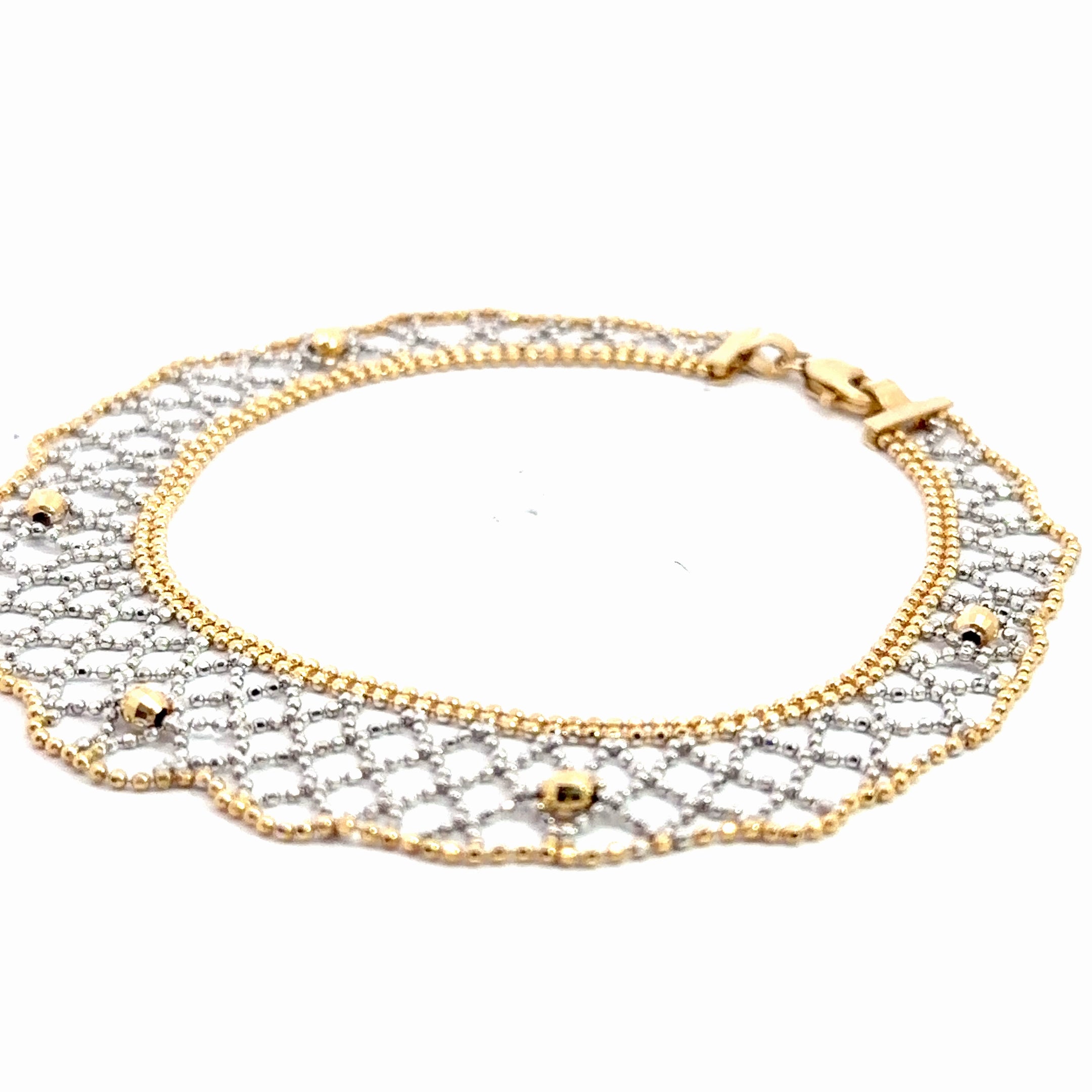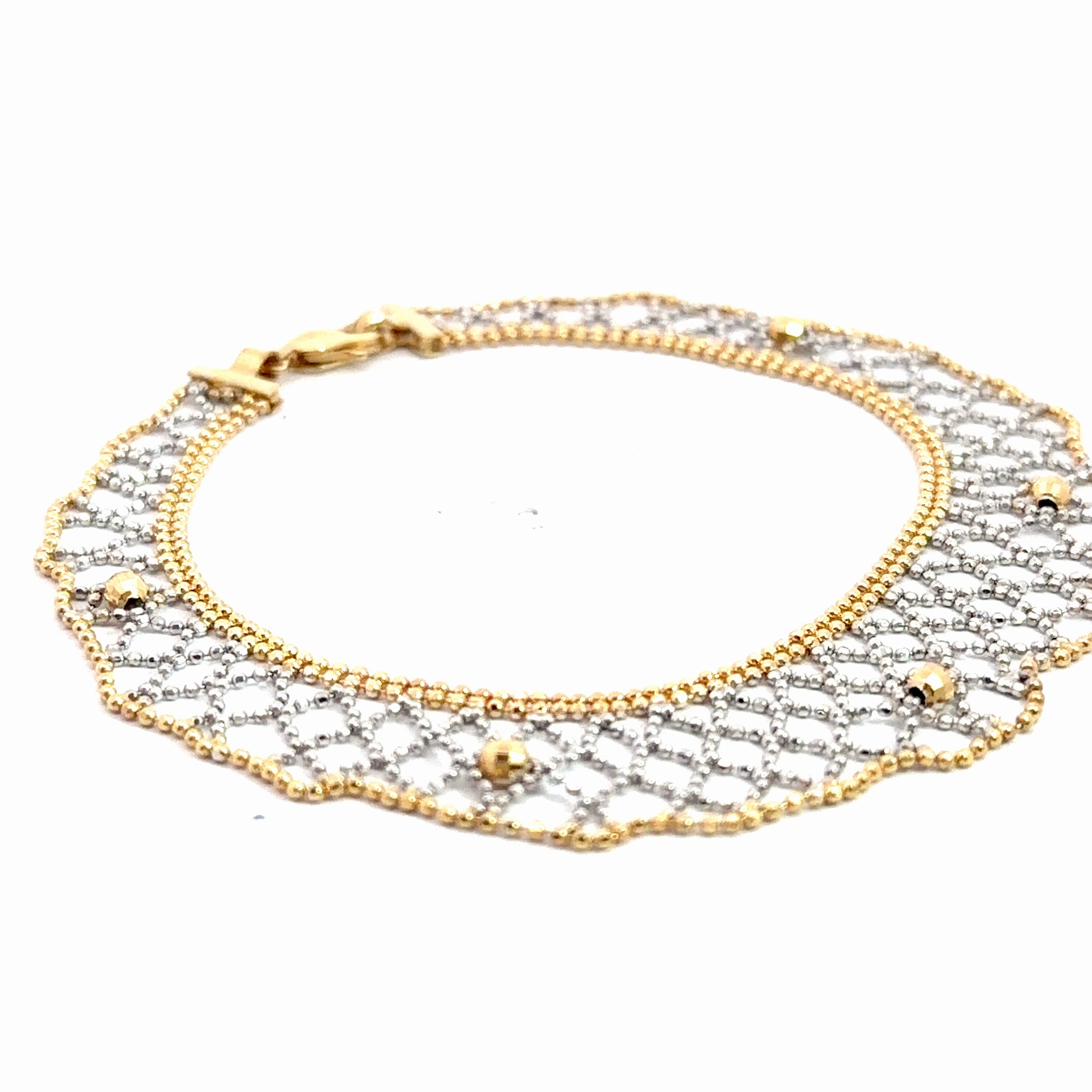 14k Two Tone Diamond Cut Beaded Mesh Bracelet