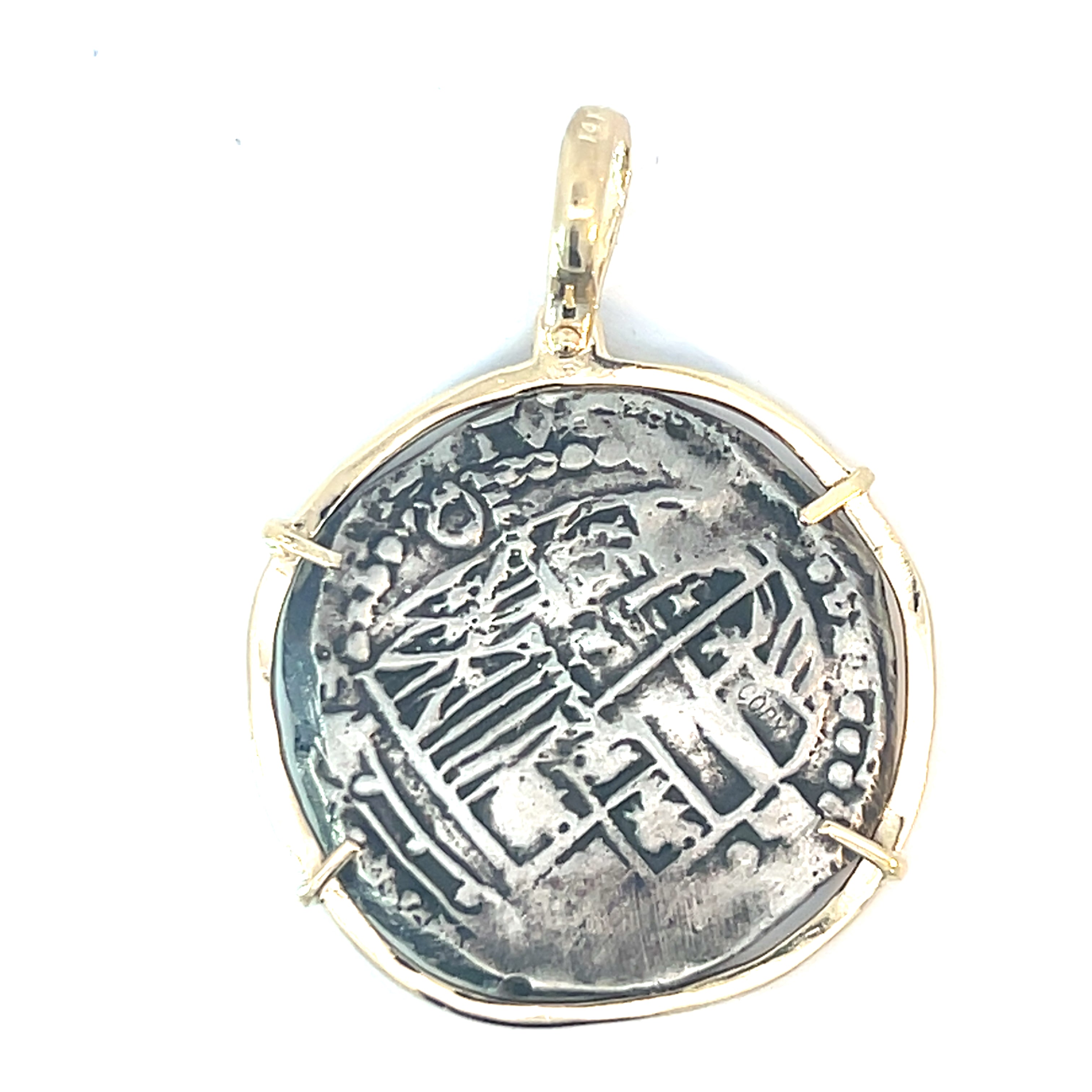 14k Two Tone Large Coin Frame Atocha Copy Pendant