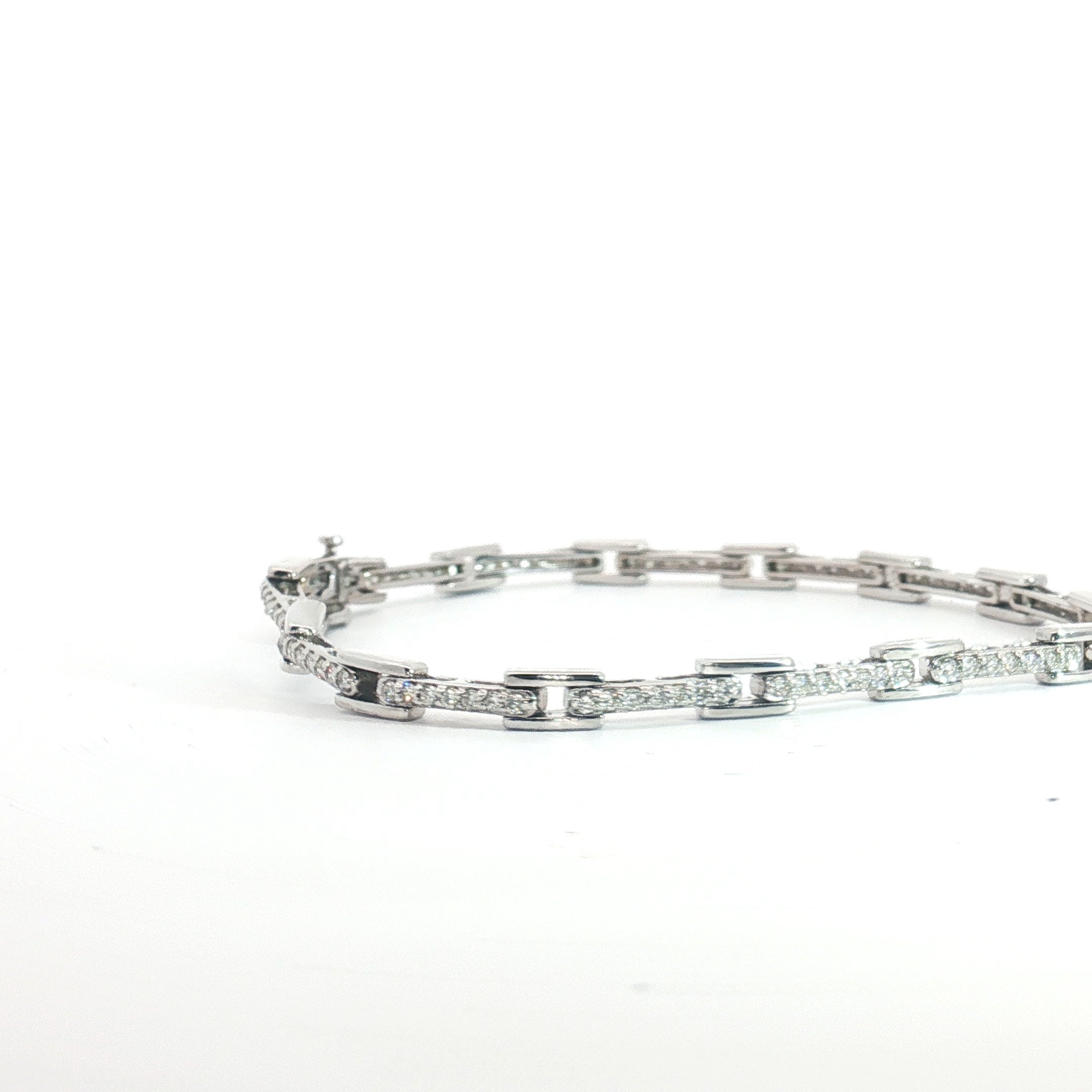 Elevate your elegance with this 14k white gold bracelet featuring a stunning 1.00ct round diamond of G color and SI1 clarity, perfectly blending brilliance and sophistication.