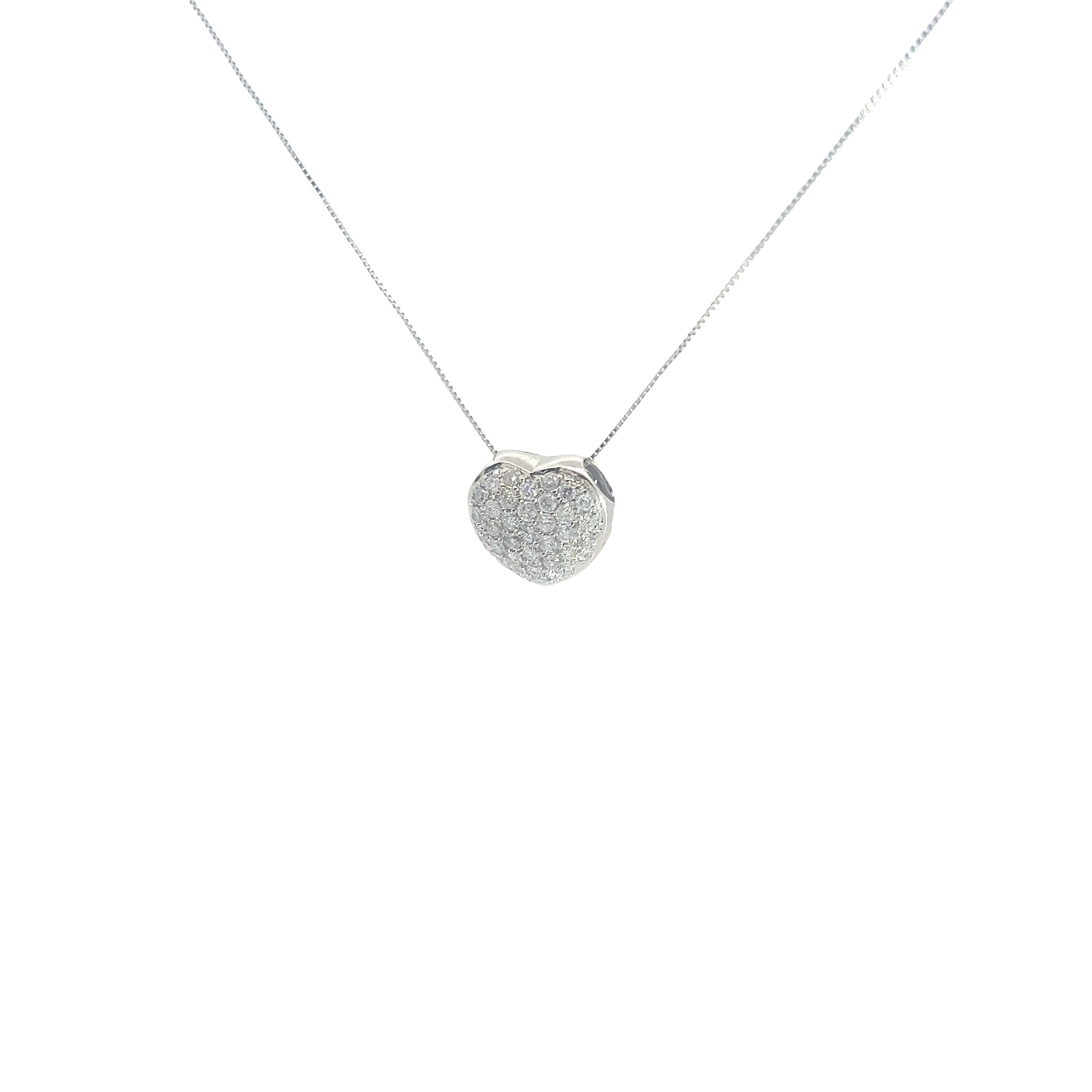 This elegant heart-shaped pendant features a 1.00ct round diamond of G color and SI2 clarity, set in lustrous 14k white gold for timeless beauty.