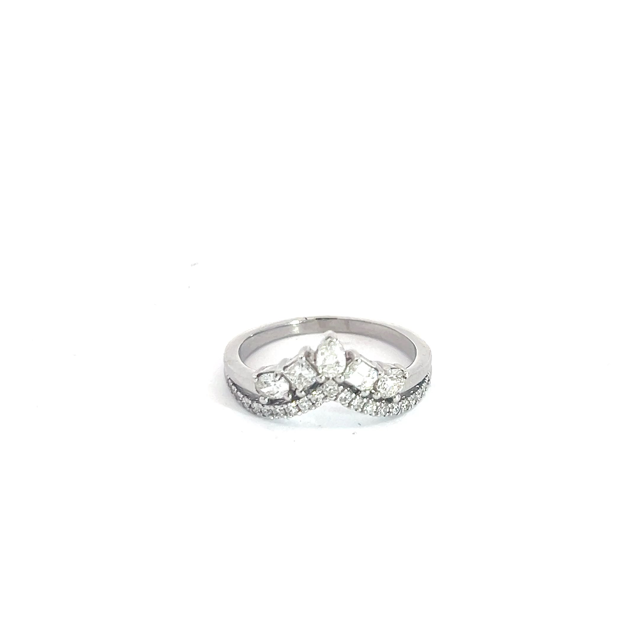 14k White Gold 1.00ct G VS2 Multi Shape Diamond (Pear, Emerald, Round, Princess Cut) Tiara Ring