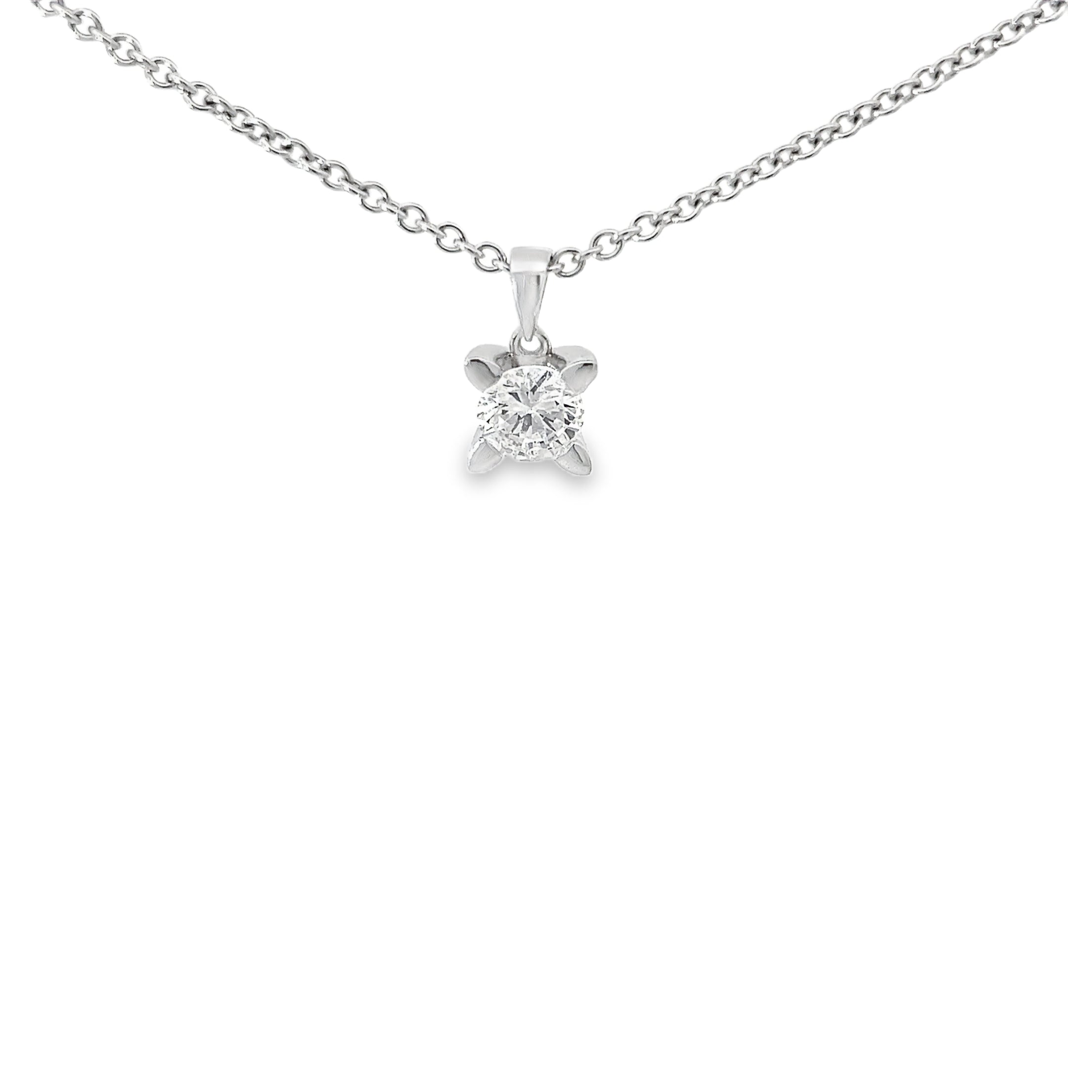Elevate your elegance with this 14k white gold pendant featuring a stunning 1.23ct round diamond in J color and VS2 clarity. Its classic solitaire design highlights the diamond’s brilliance, making it a timeless addition to any jewelry collection.