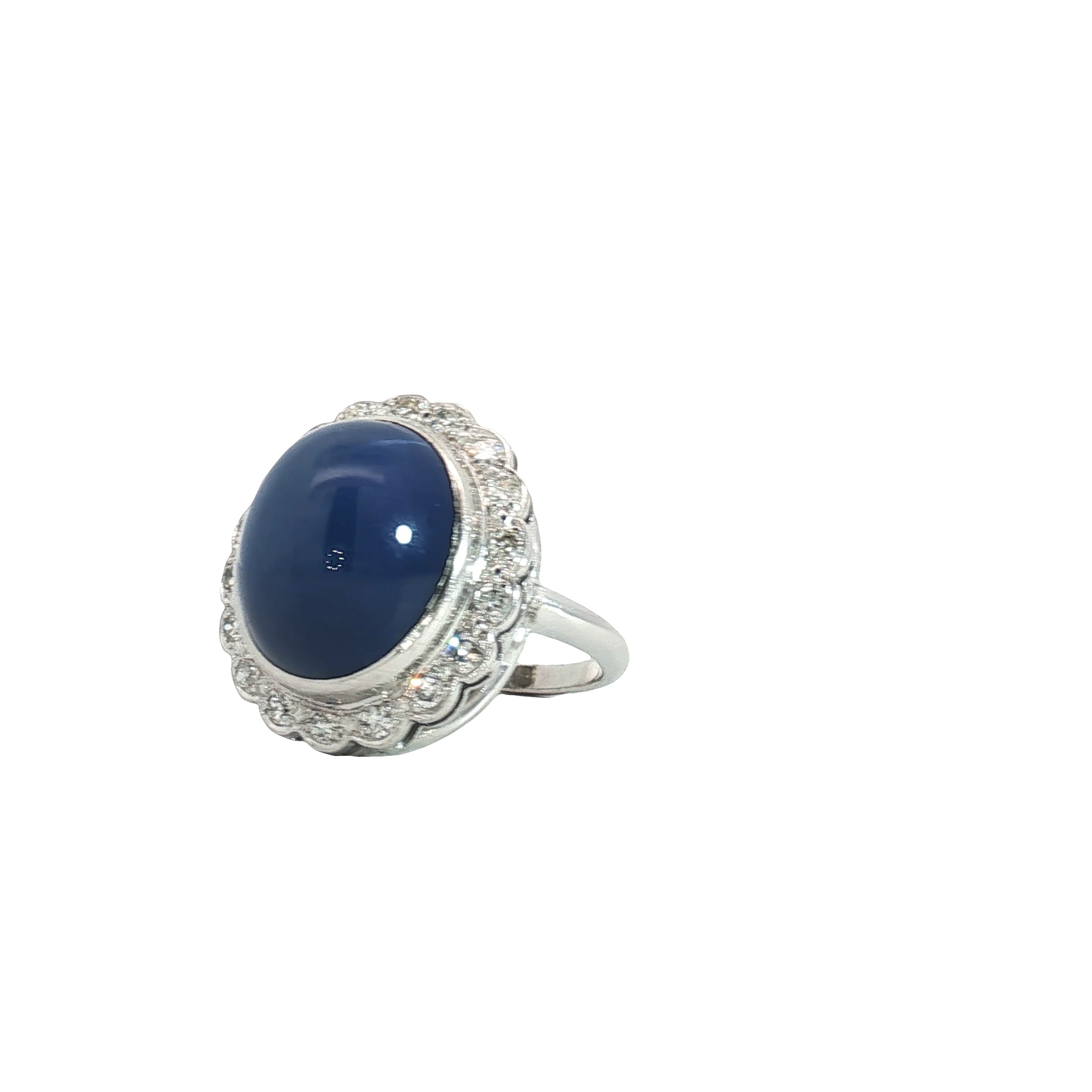 14k White Gold 14 x 12 Oval Cabochon Lindy Star Sapphire/ .30ct F VS2 Round Diamond Ring