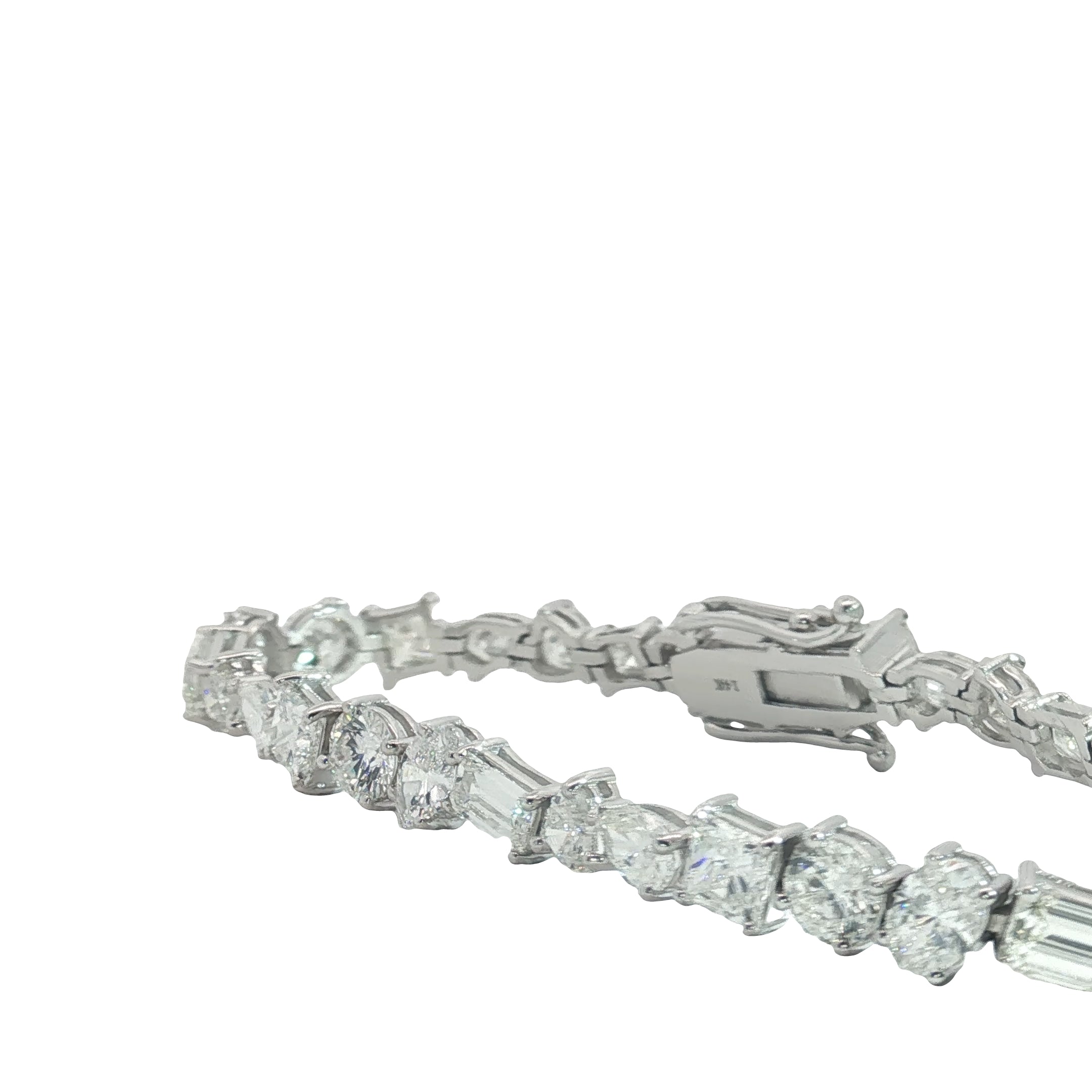 Elevate your jewelry collection with this stunning 14k white gold tennis bracelet, featuring an impressive 15.28 carats of premium diamonds. Showcasing thirty exquisitely cut stones in varied shapes—including princess, emerald, pear, heart, round, marquise, and oval—this piece delivers unmatched visual interest and sparkle. Each diamond meets F/G color and VS2 clarity standards, ensuring brilliant radiance with exceptional quality. The thoughtful mix of cuts creates dynamic light play that catches the eye from every angle, making this bracelet a versatile statement piece for both everyday elegance and special occasions. A timeless investment in luxury that transforms any wrist.