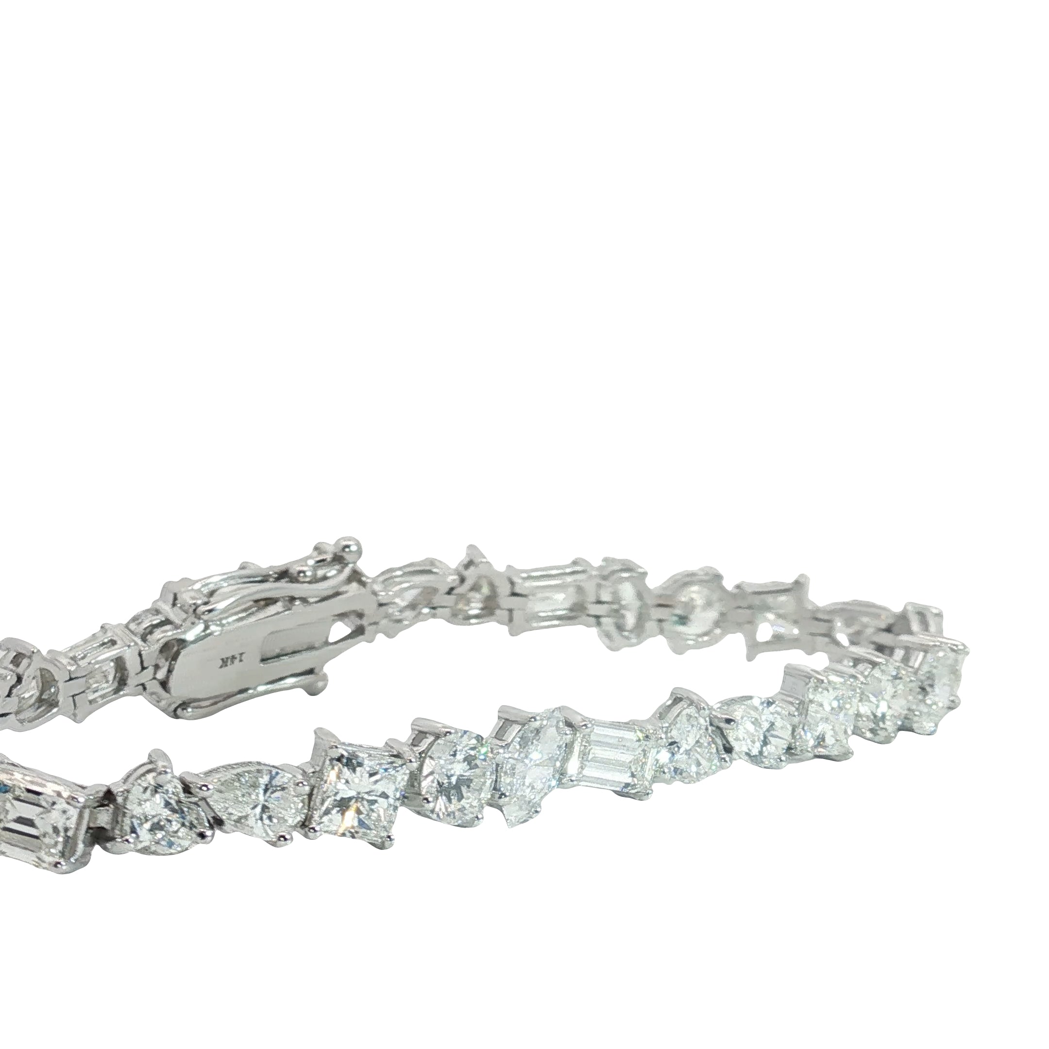 14k White Gold 15.28ct F/G VS2 Princes Cut, Emerald Cut, Pear Shape, Heart, Round, Marquis and Oval (30) Multi Shape Total Diamonds Tennis Bracelet
