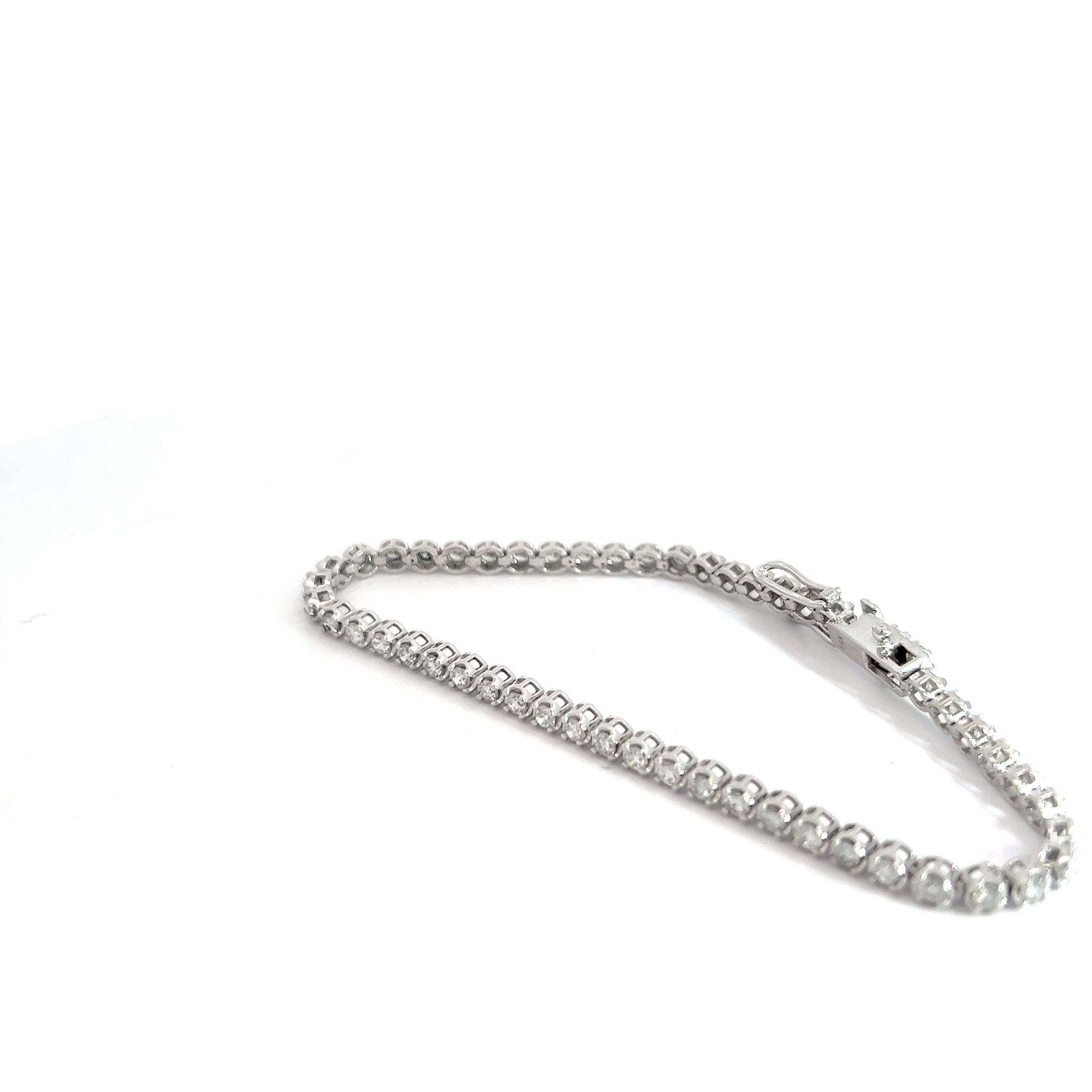 This stunning tennis bracelet features 2.85 carats of G color, VS2 clarity round diamonds, set in 14k white gold with secure 4 prong illusion settings for a brilliant and elegant look.