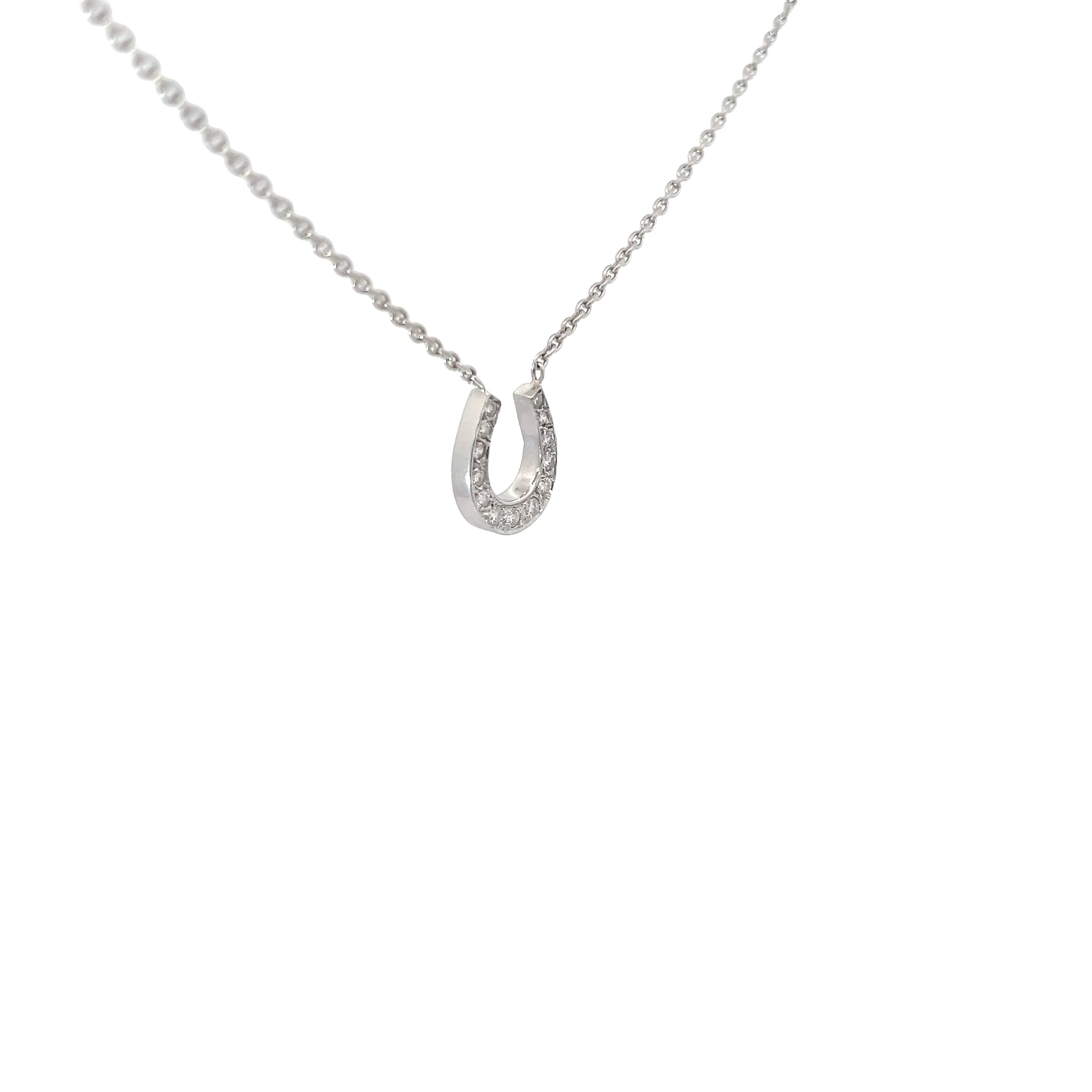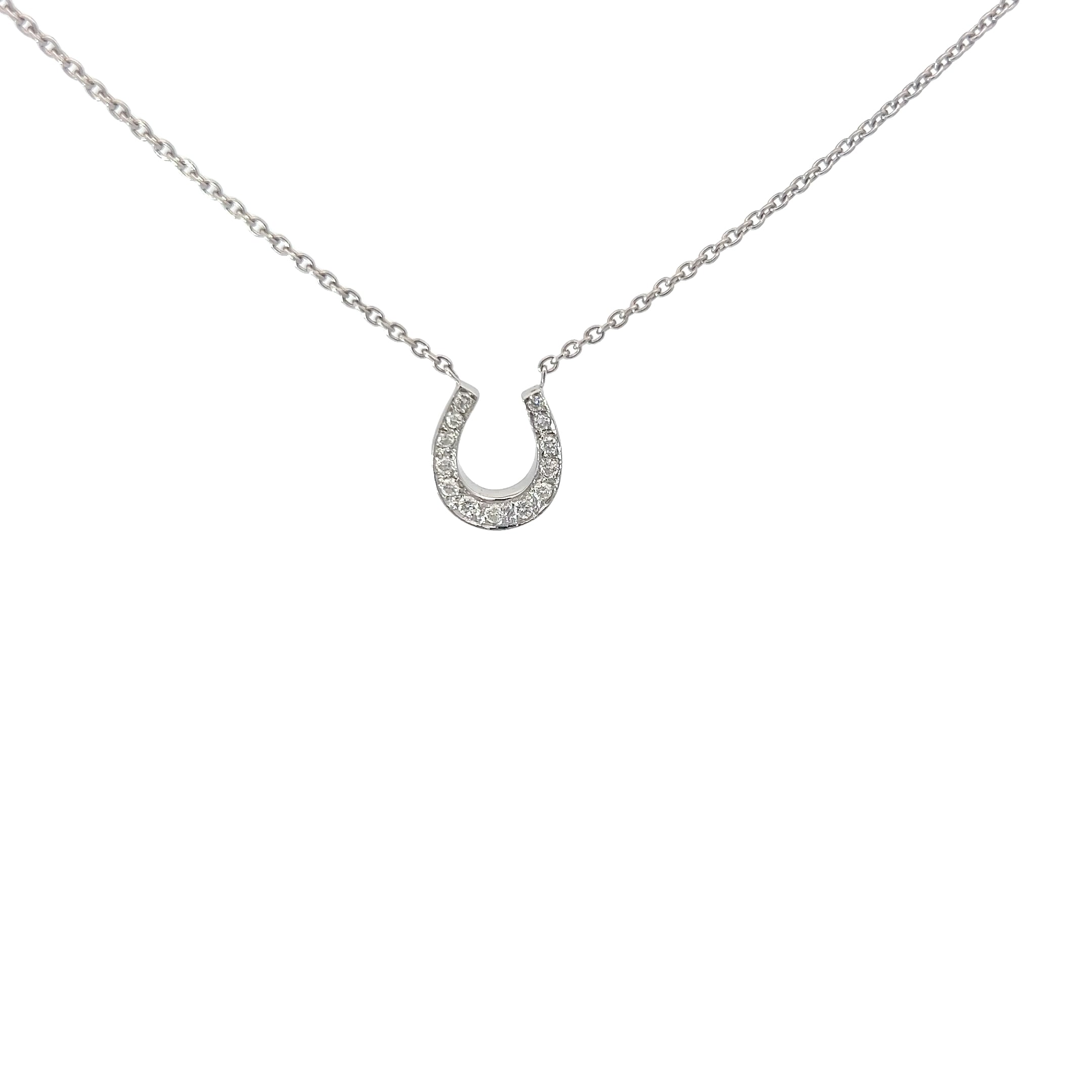 This breathtaking horseshoe pendant is crafted from 14k white gold and features a dazzling .25ct H VS2 round diamond. Weighing 4.50 grams and measuring 16 inches, it is the perfect piece to add to your jewelry collection. Show off your passion for fine jewelry with this exquisite pendant today!