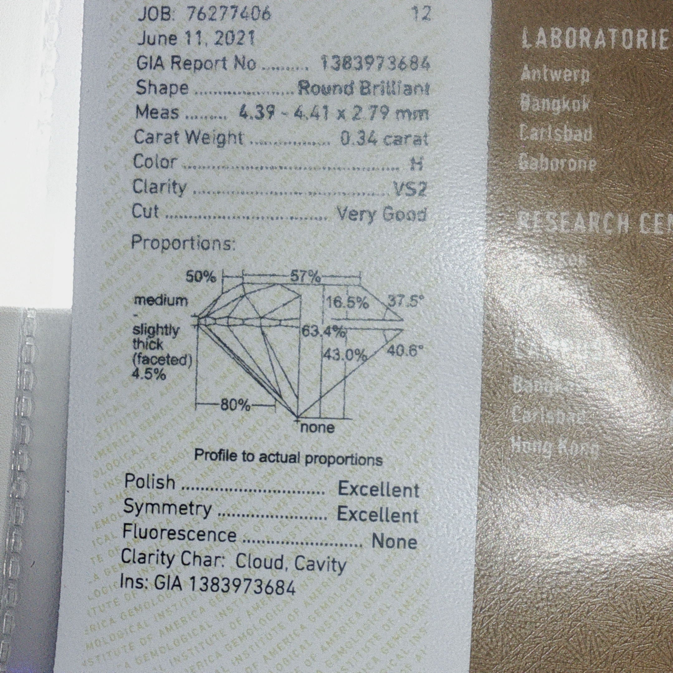 14k White Gold .34ct H VS2 Center Round Diamond /.16ct F VS2 Round Diamond Engagement Ring Certified By GIA # 1383973684