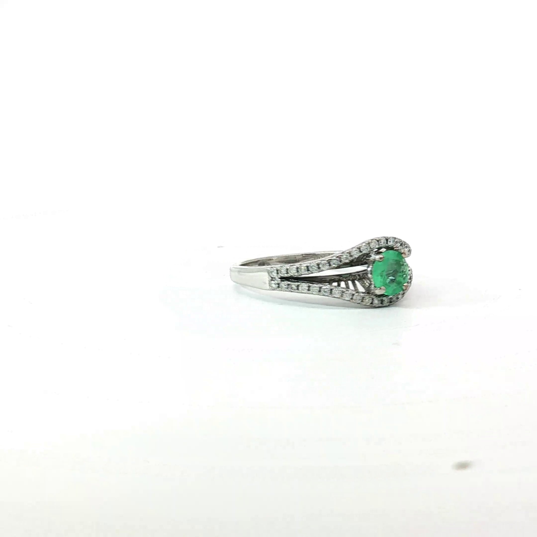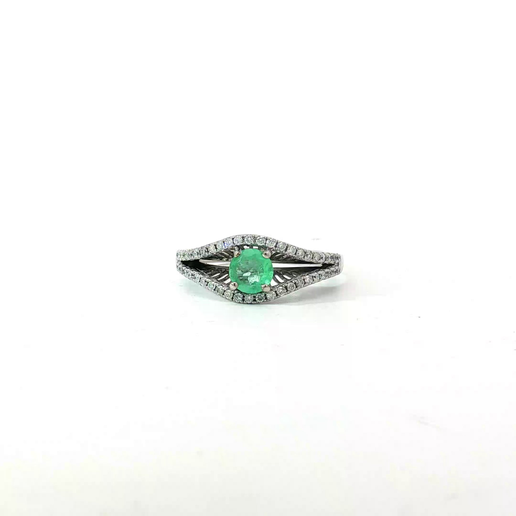 14k White Gold .45ct Round Colombian Emerald /.35ct G SI1 Round Diamond Fashionable Ring Certified By Mac Emerald