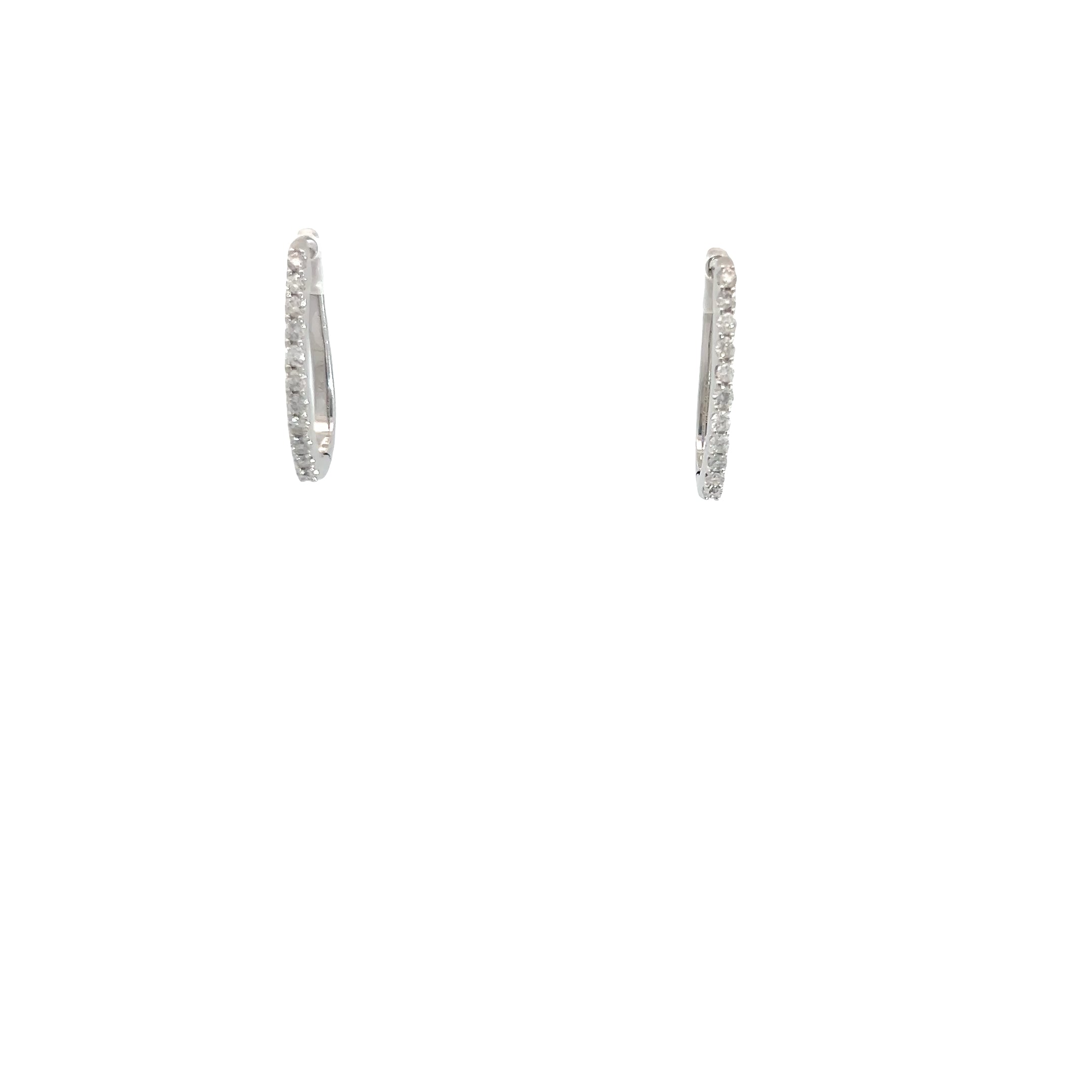 Elegant 14k white gold hoop earrings featuring a total of .50 carats in G color, VS2 clarity round diamonds set in a refined oval design, measuring 3/4 by 1/2 inch. These exquisite earrings blend classic sparkle with contemporary style.