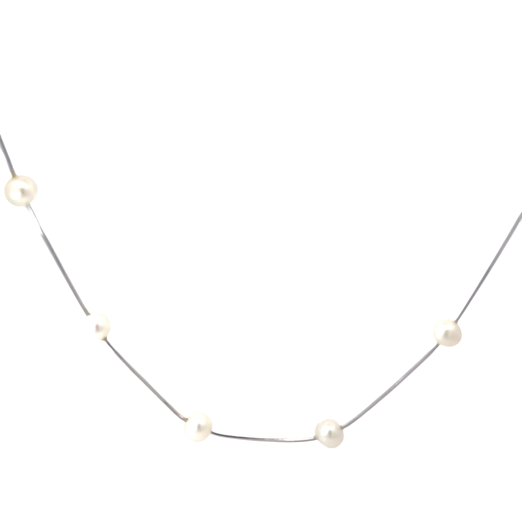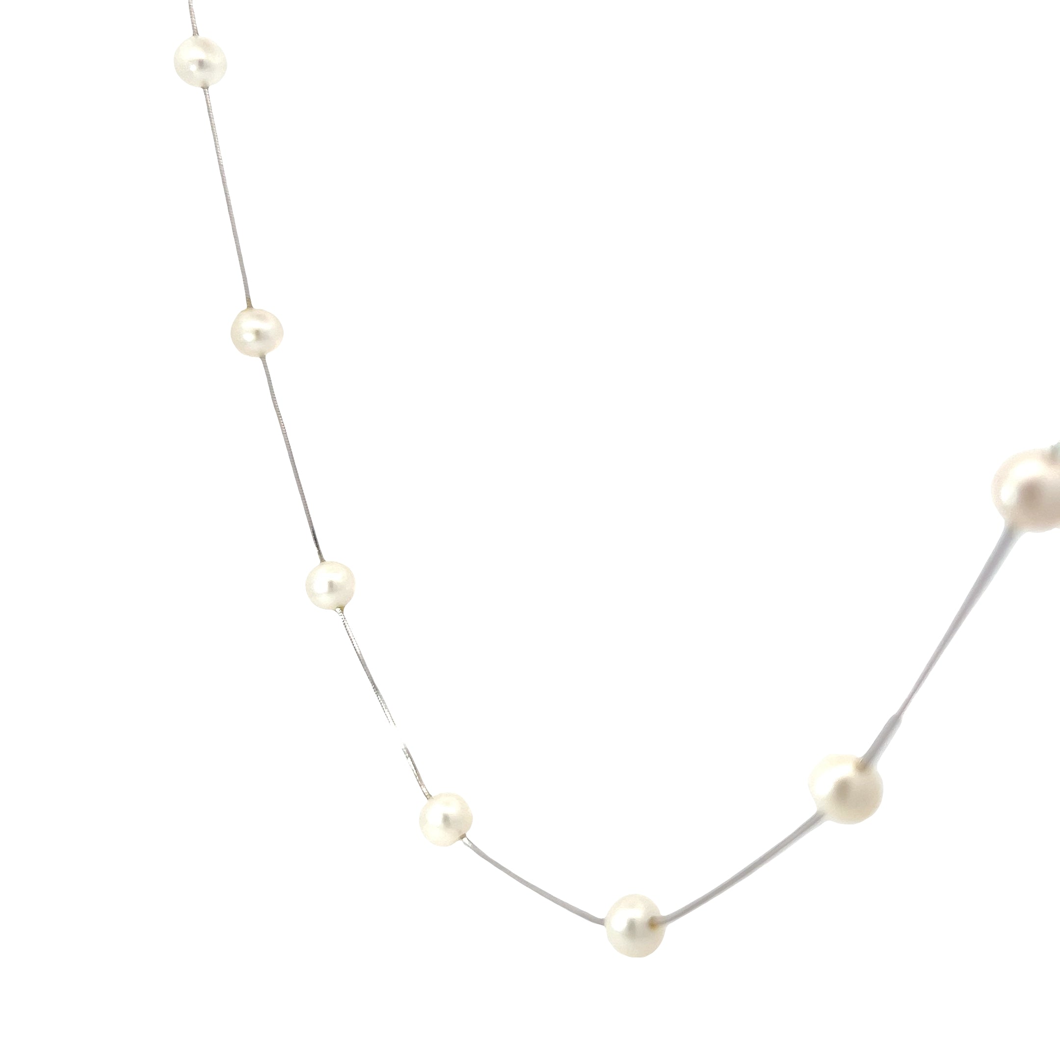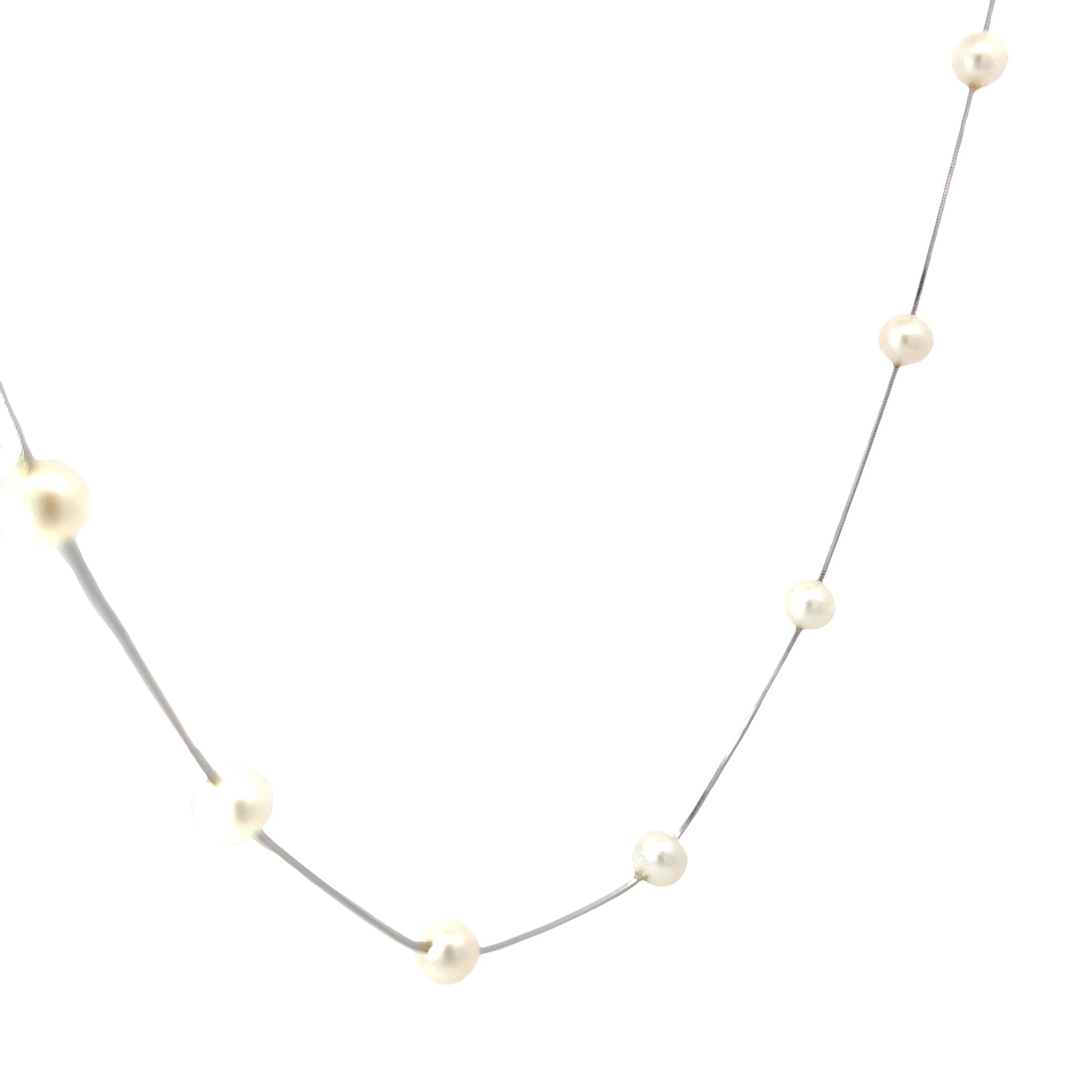 14k White Gold 6.5mm (11) Pearls 16" inch 1.5 Section on 1mm Necklace