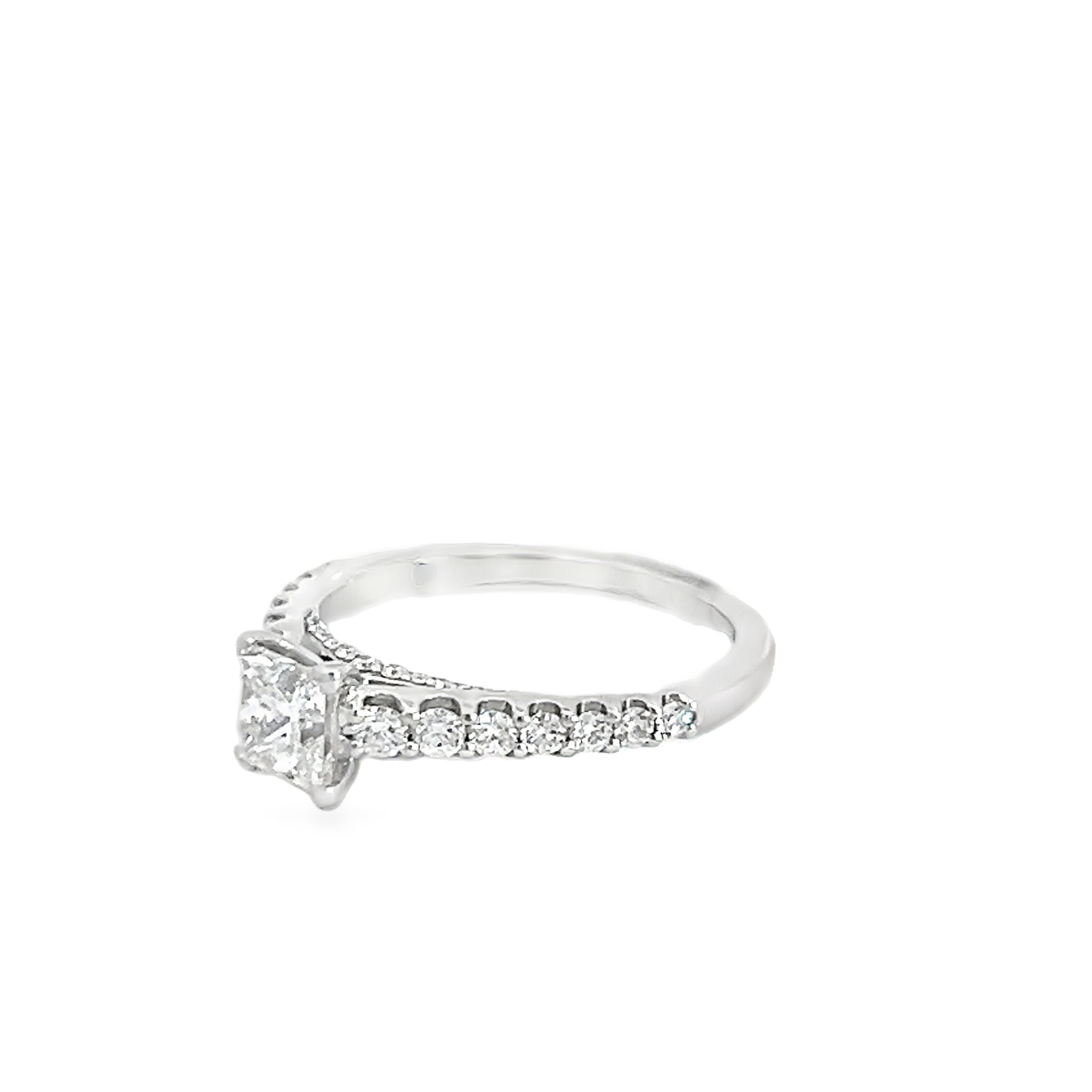 14k White Gold .87ct G VS2 Princess Cut/.65ct F VS2 Round Diamond Engagement Ring Certified By GIA # 14663639