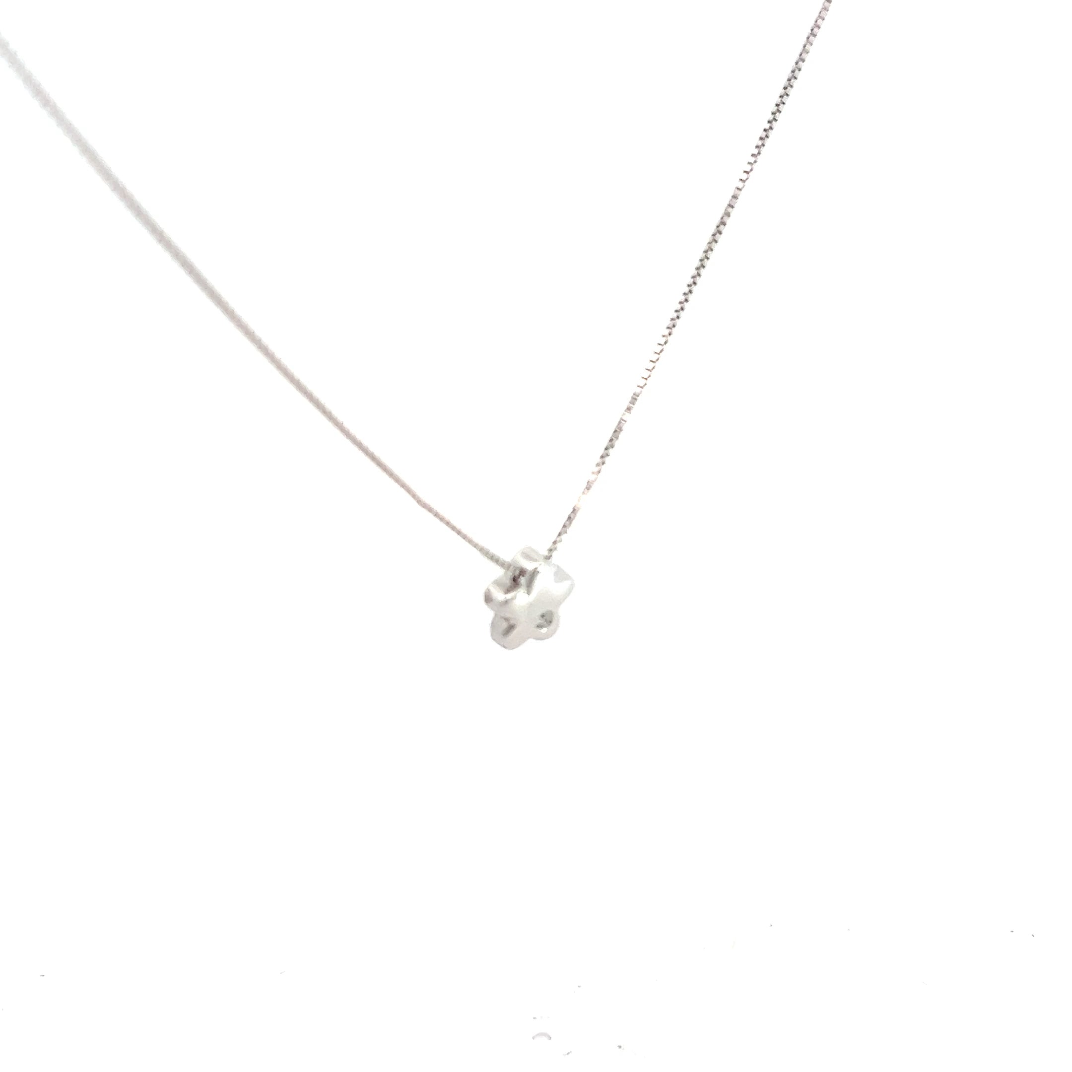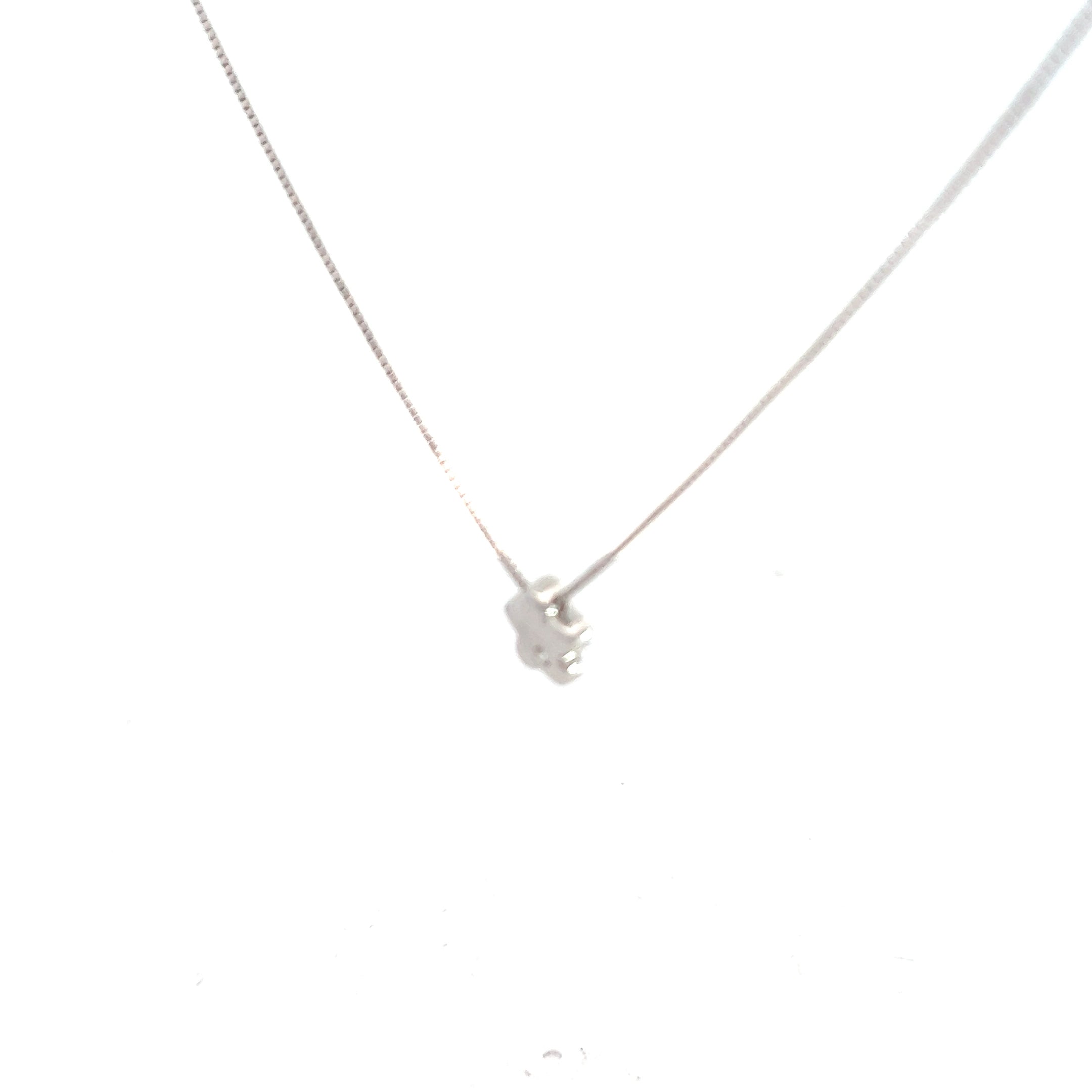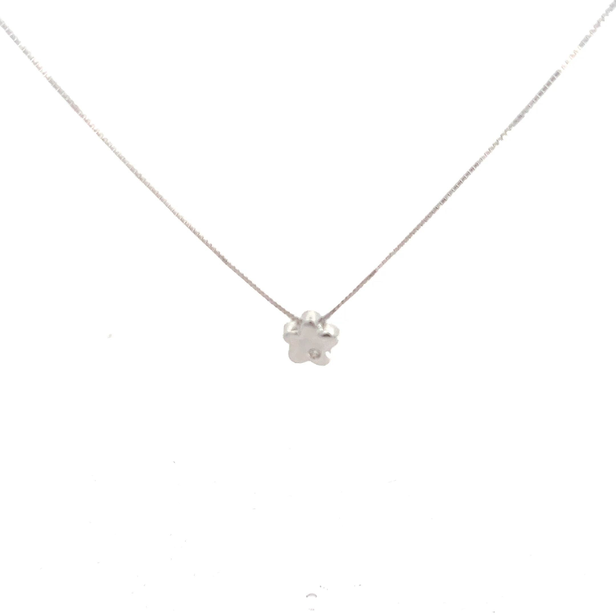 14k White Gold Flower with One Round Diamond / Small Box Chain Pendant 2.4gram 18"inch