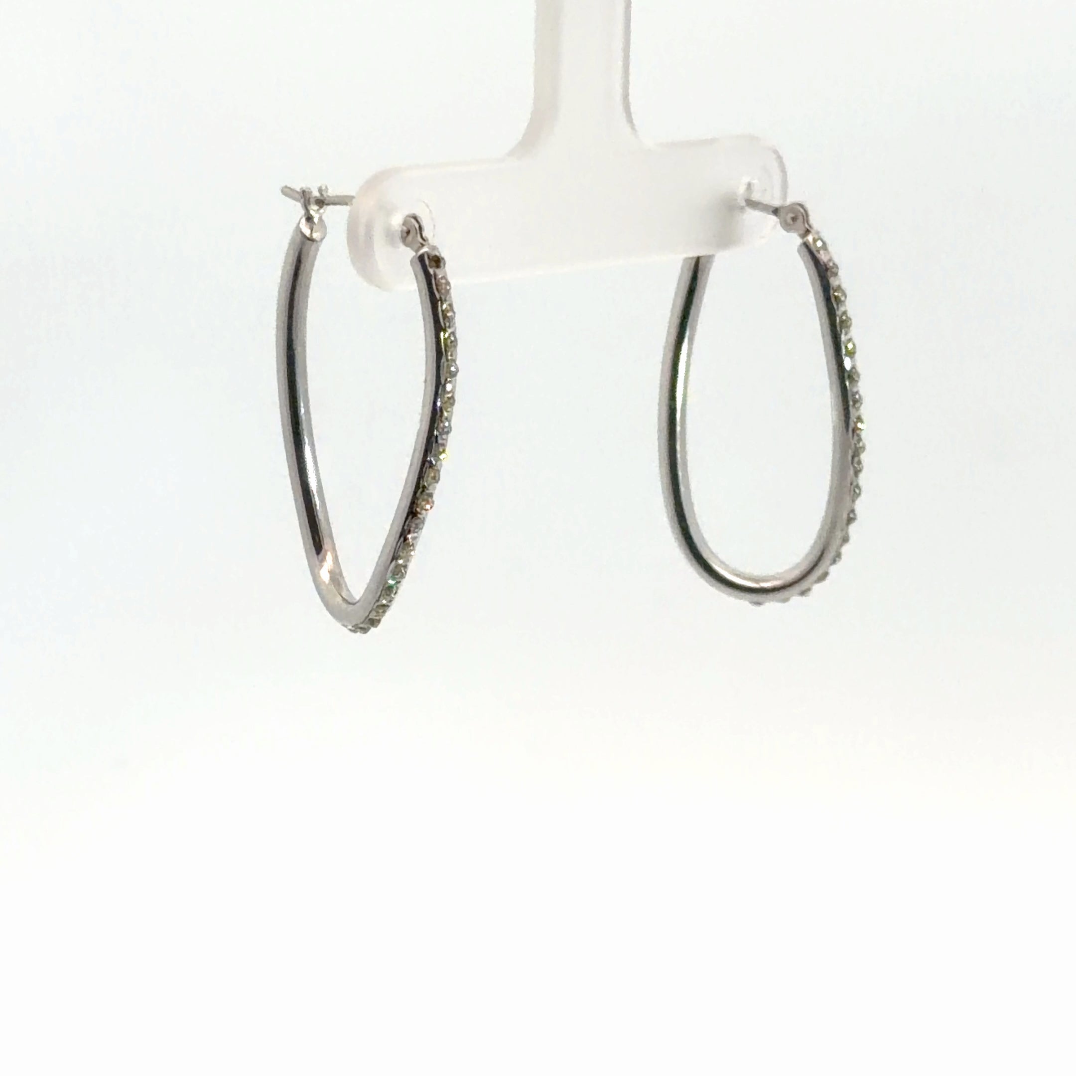 14k White Gold Oval Shape Hoop Earrings 1.1 gram