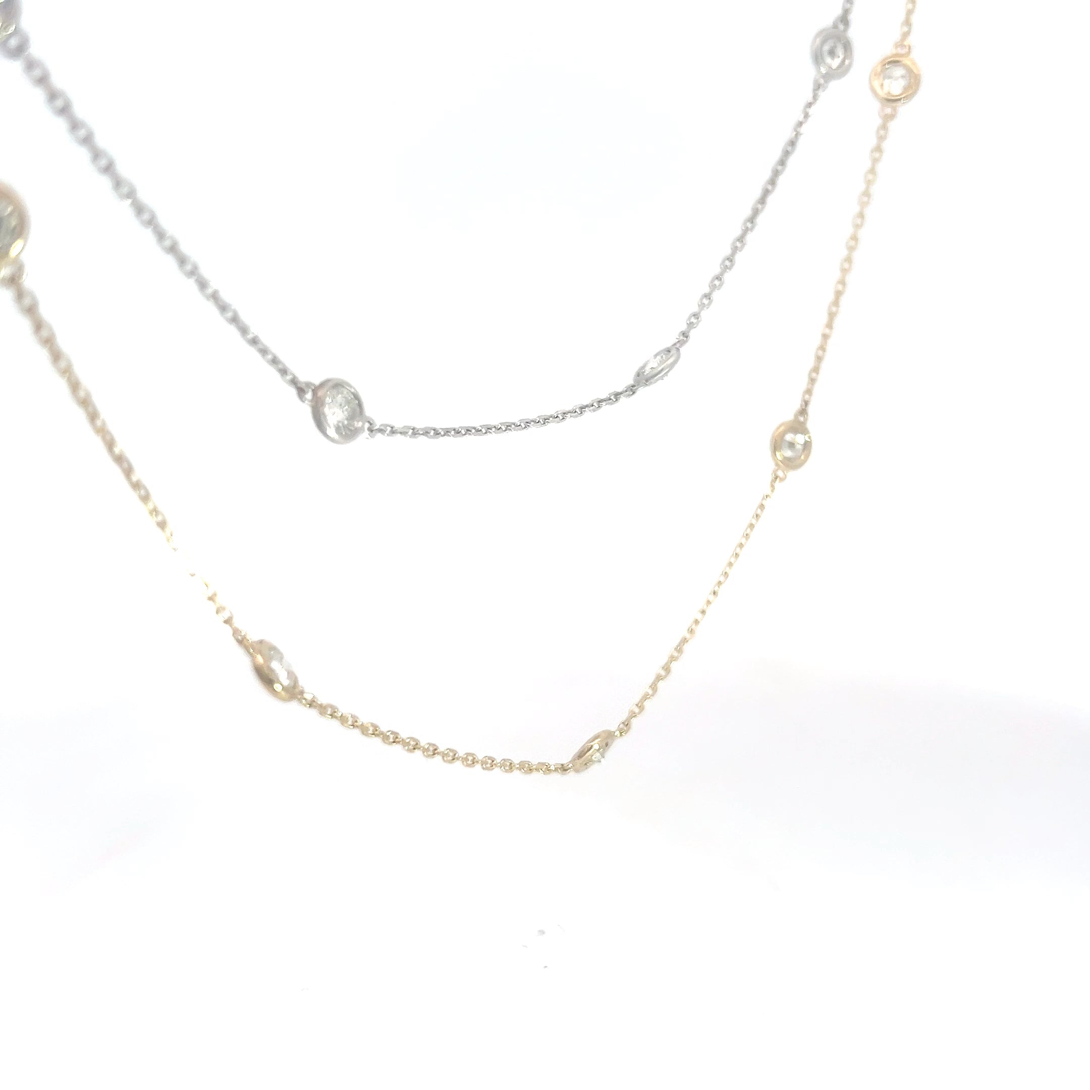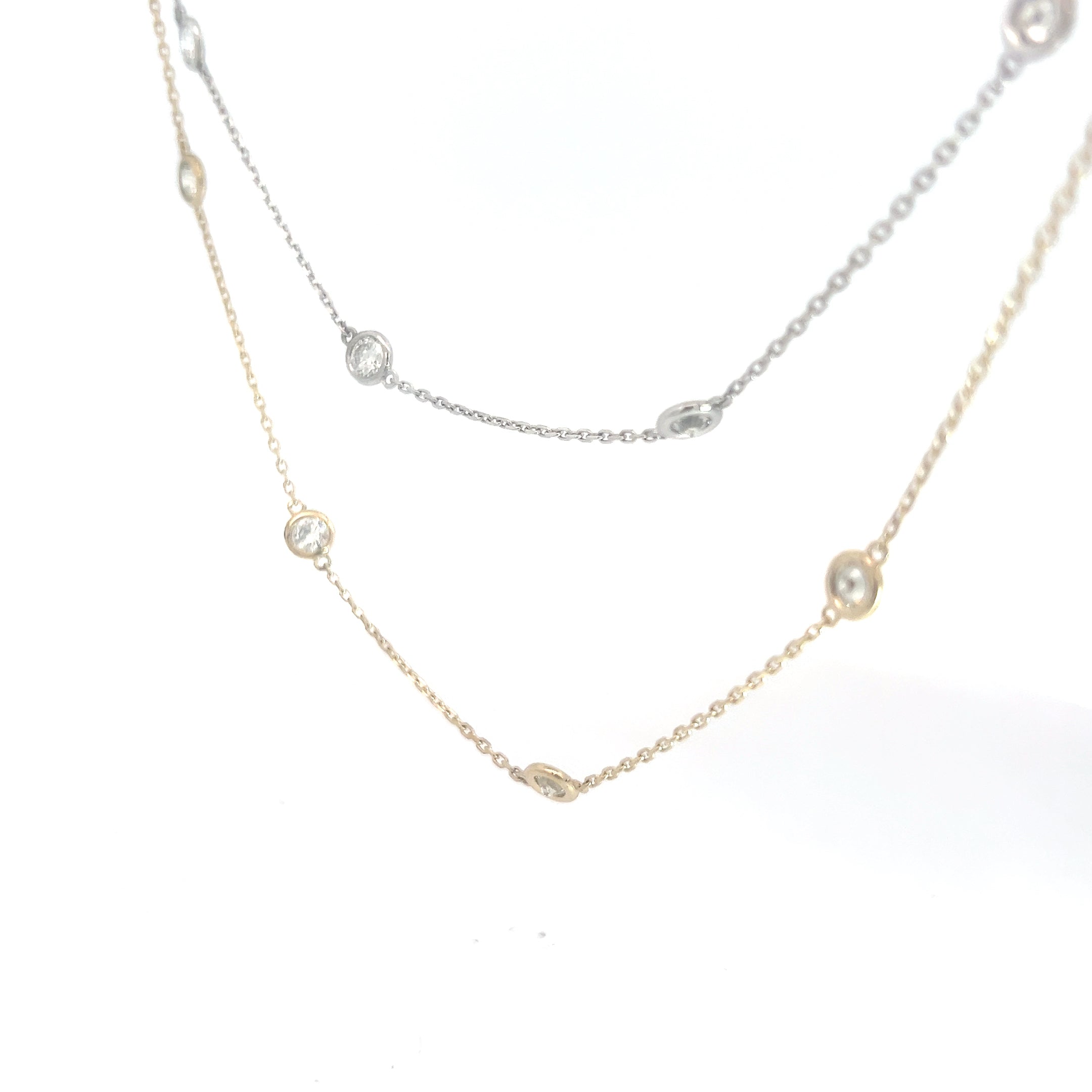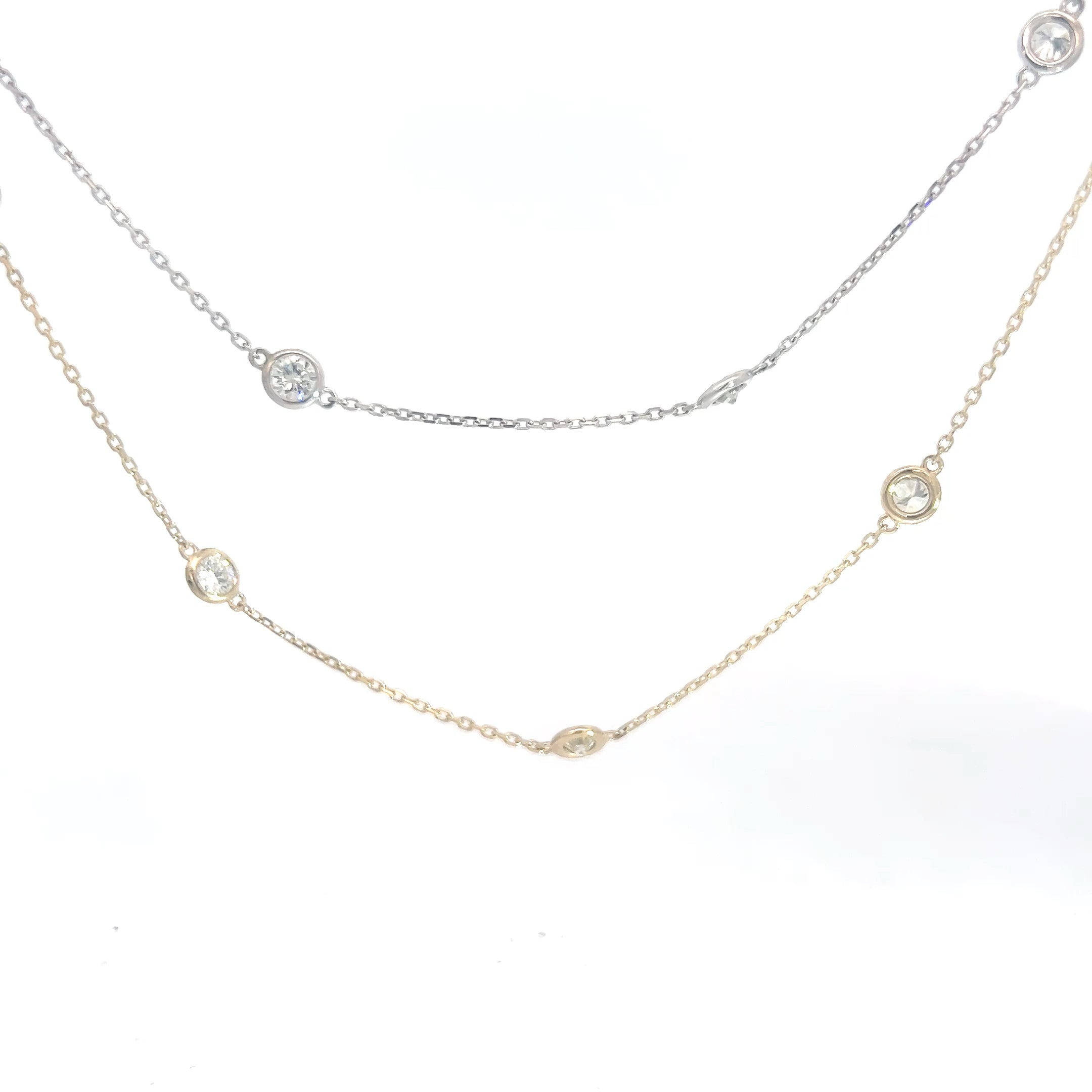 14k White / Yellow Gold 2.42ct G/H VS2 / SI1 Round Diamond by the Yard Necklace