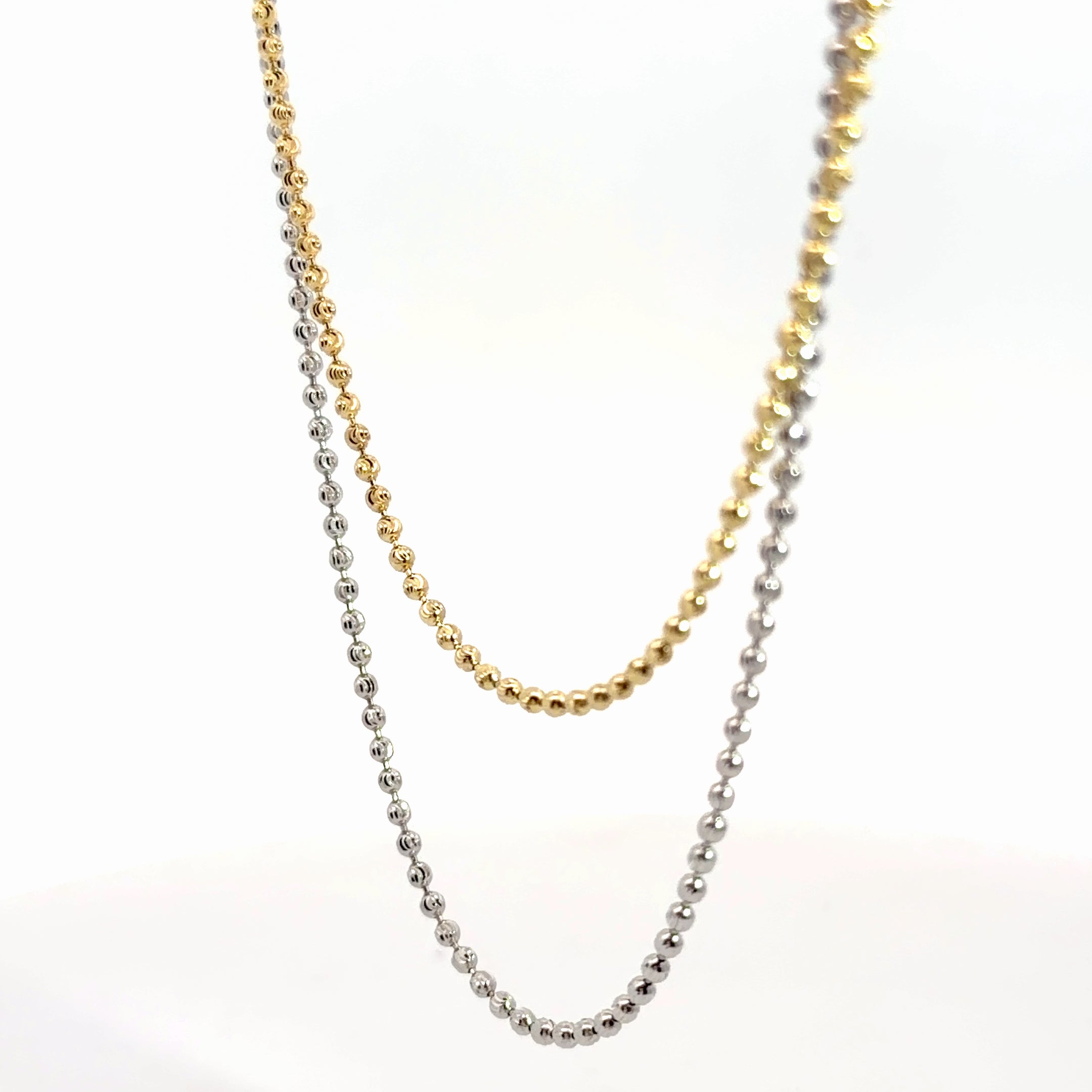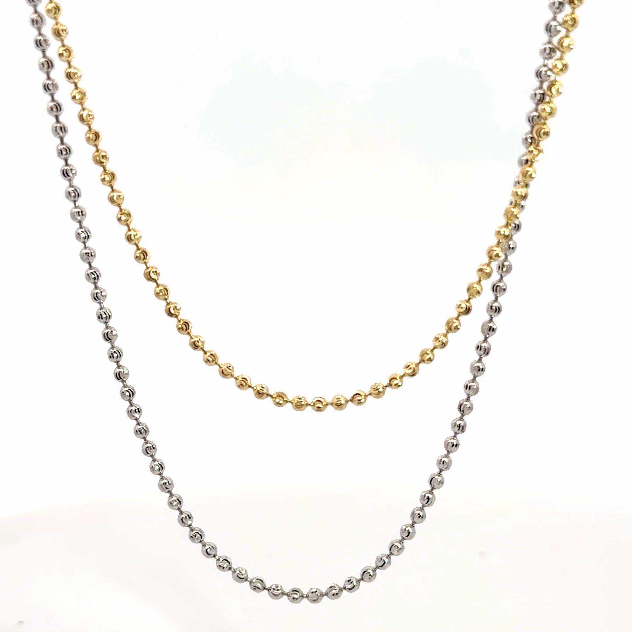 Elevate your everyday elegance with this stunning 14k gold beaded necklace, expertly crafted in a harmonious blend of yellow and white gold. At 20 inches, this refined piece drapes beautifully at the collarbone, striking the perfect balance between understated sophistication and eye-catching allure. Weighing a substantial 7.2 grams, it delivers the quality and presence you'd expect from fine jewelry. Whether layered with other delicate pieces or worn solo, this versatile necklace becomes an instant favorite in any jewelry collection.
