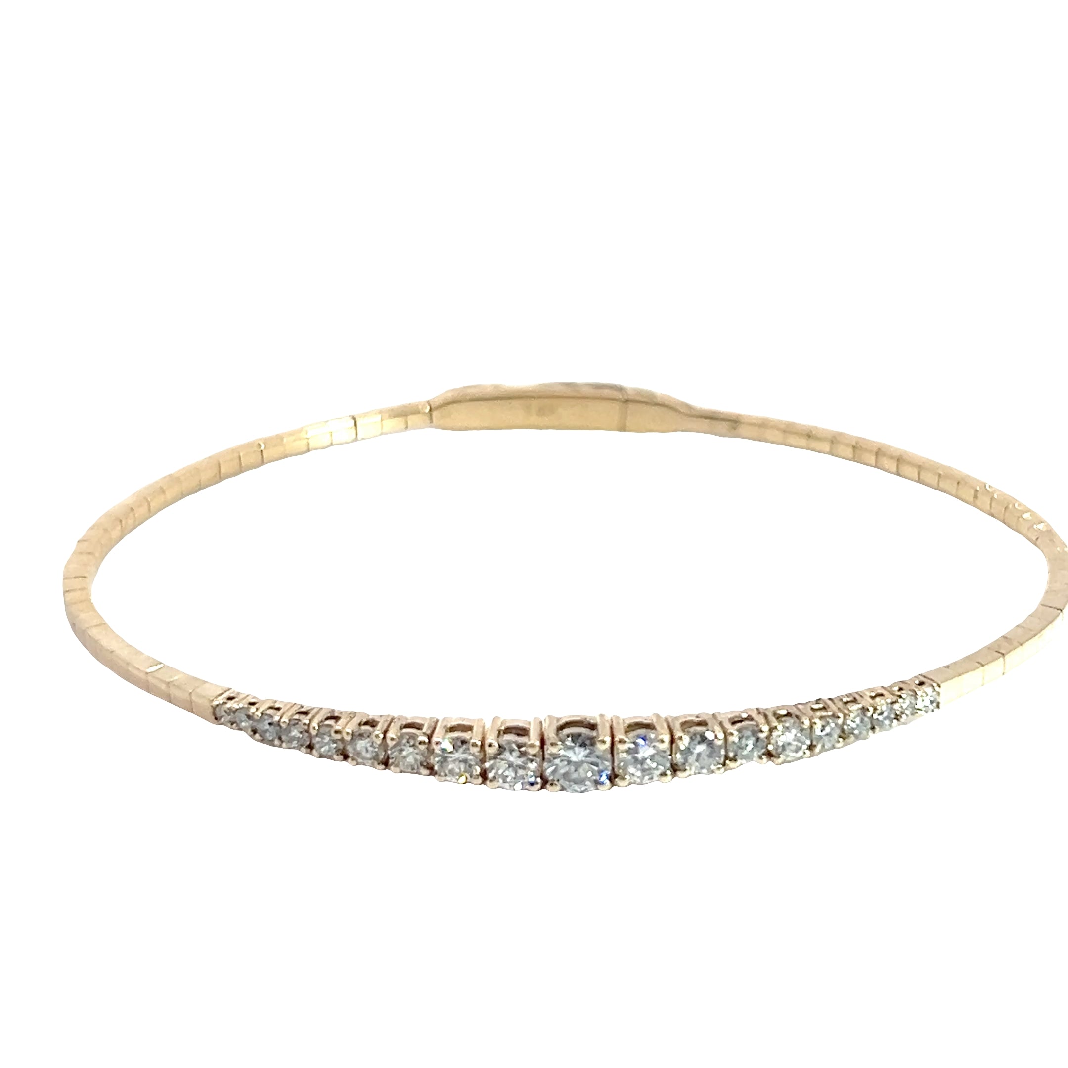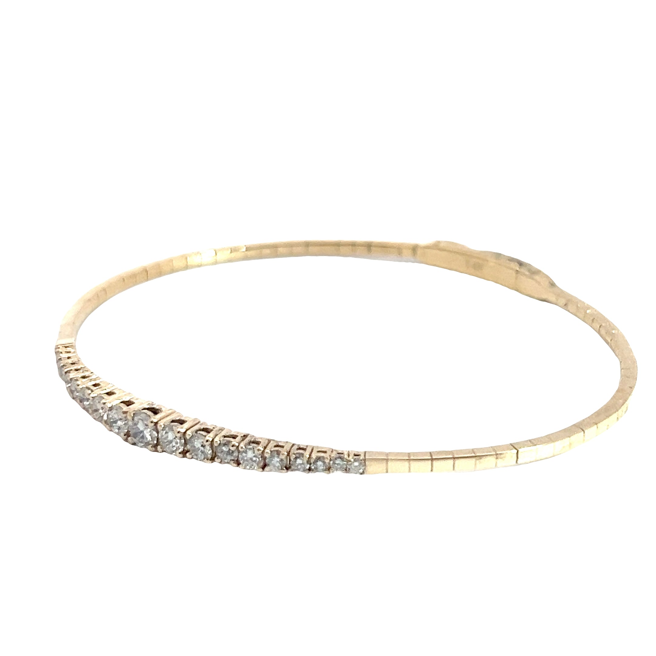 14k Yellow Gold 1.00ct G VS2 Round Diamond Graduated Flexible Bangle Bracelet