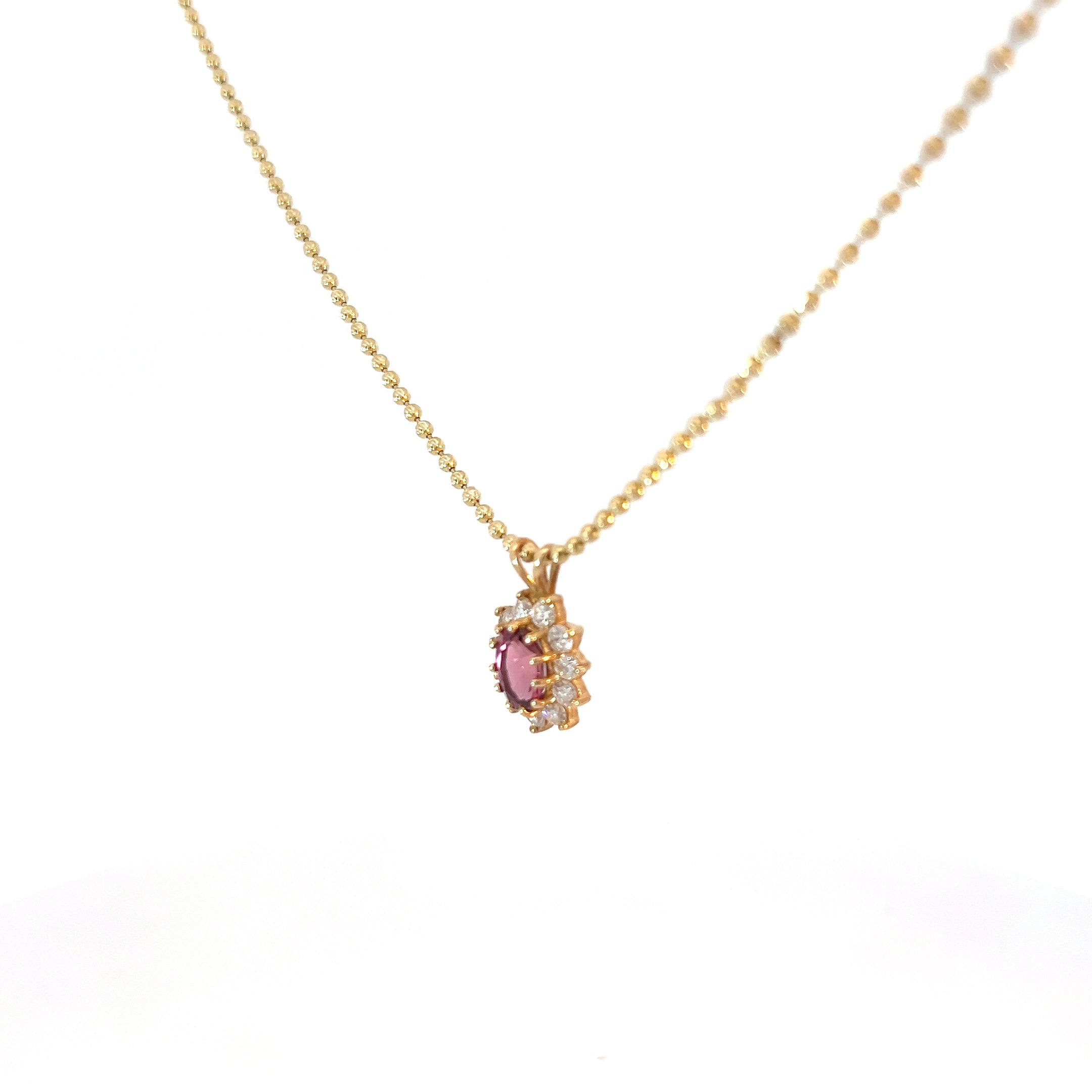 14k Yellow Gold 1.50 Oval Pink Tourmaline Surrounded By (11) Round Diamond E VS2 on a Diamond Cut Necklace 16"inch