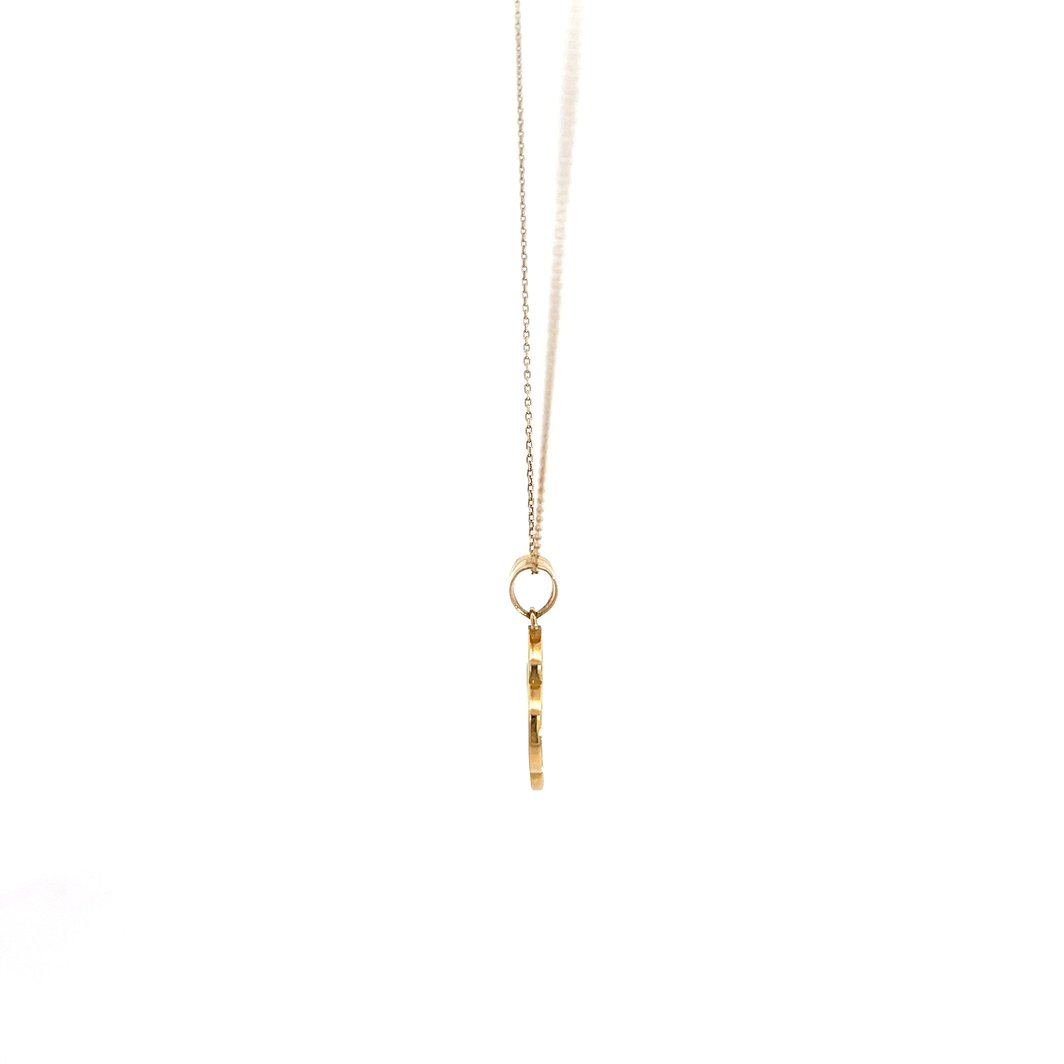 This 14k yellow gold pendant features a beautifully crafted four-leaf clover design with a diamond-cut finish. The chain measures 16 inches, with an adjustable length extending up to 18 inches for the perfect fit.