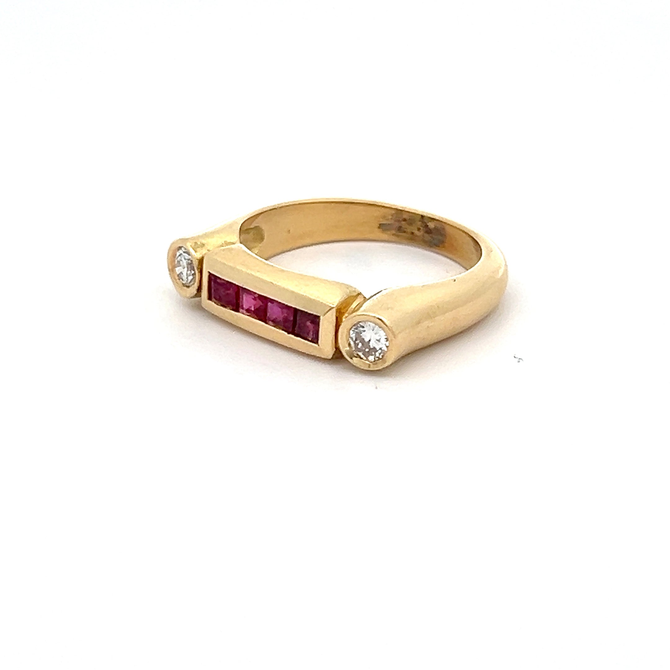 14k Yellow Gold .45ct Princess Cut Ruby /.15ct G VS2 Round Diamond Ring Design By German Designer