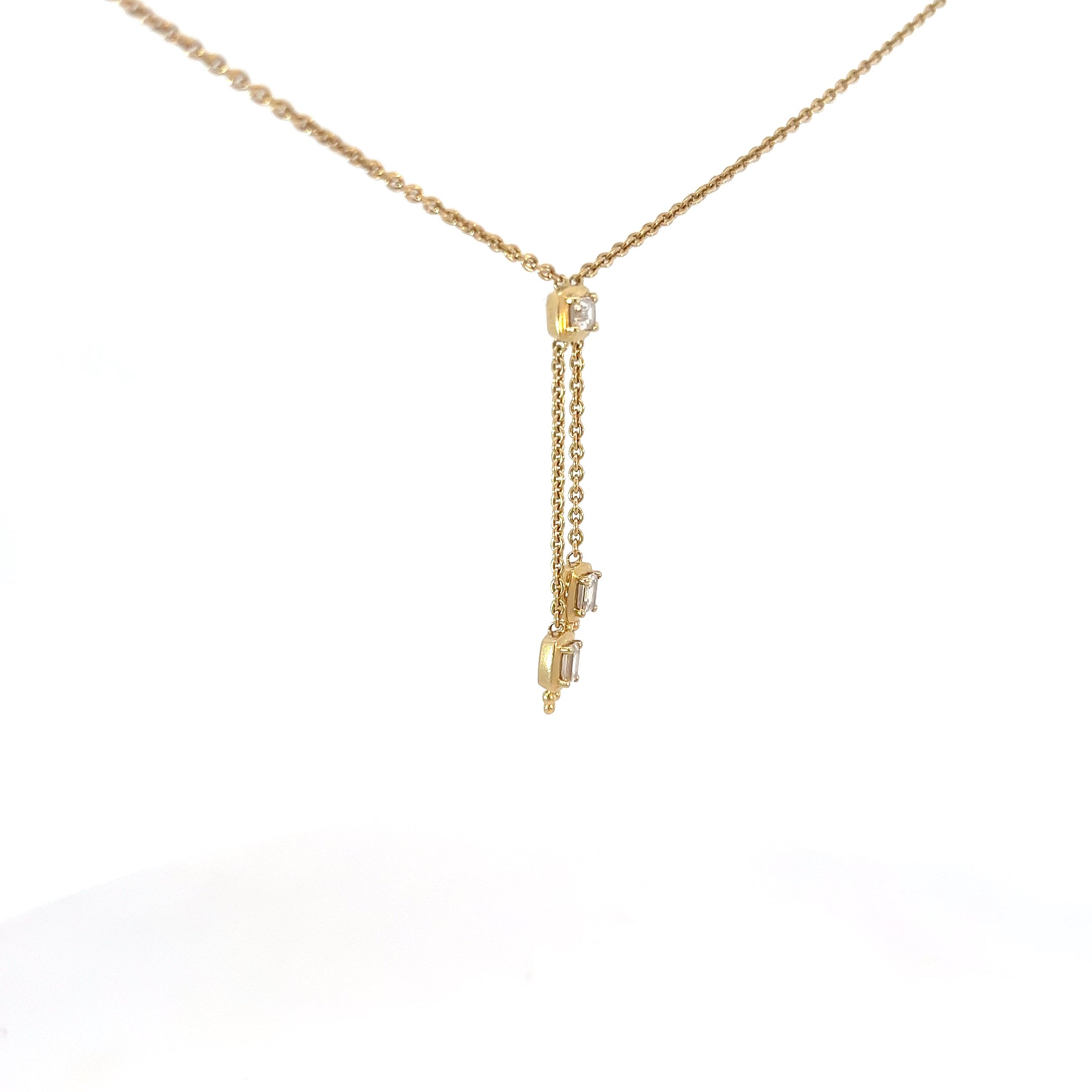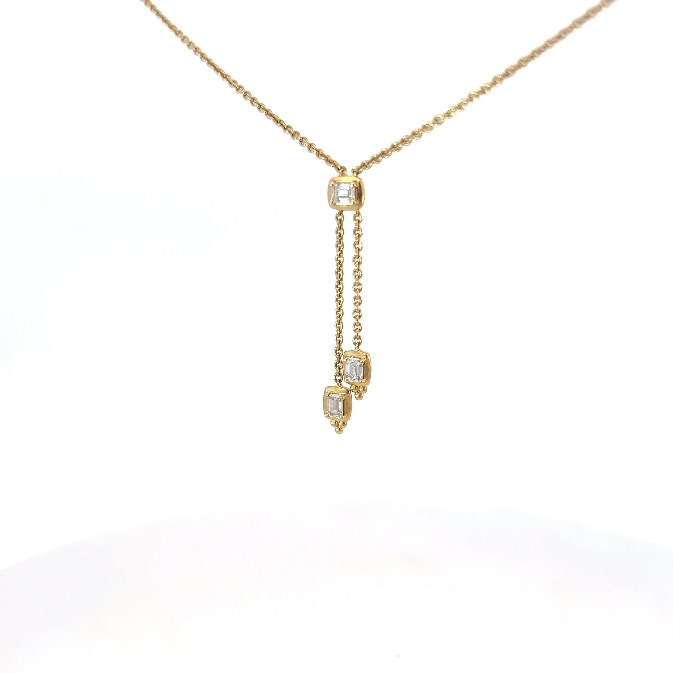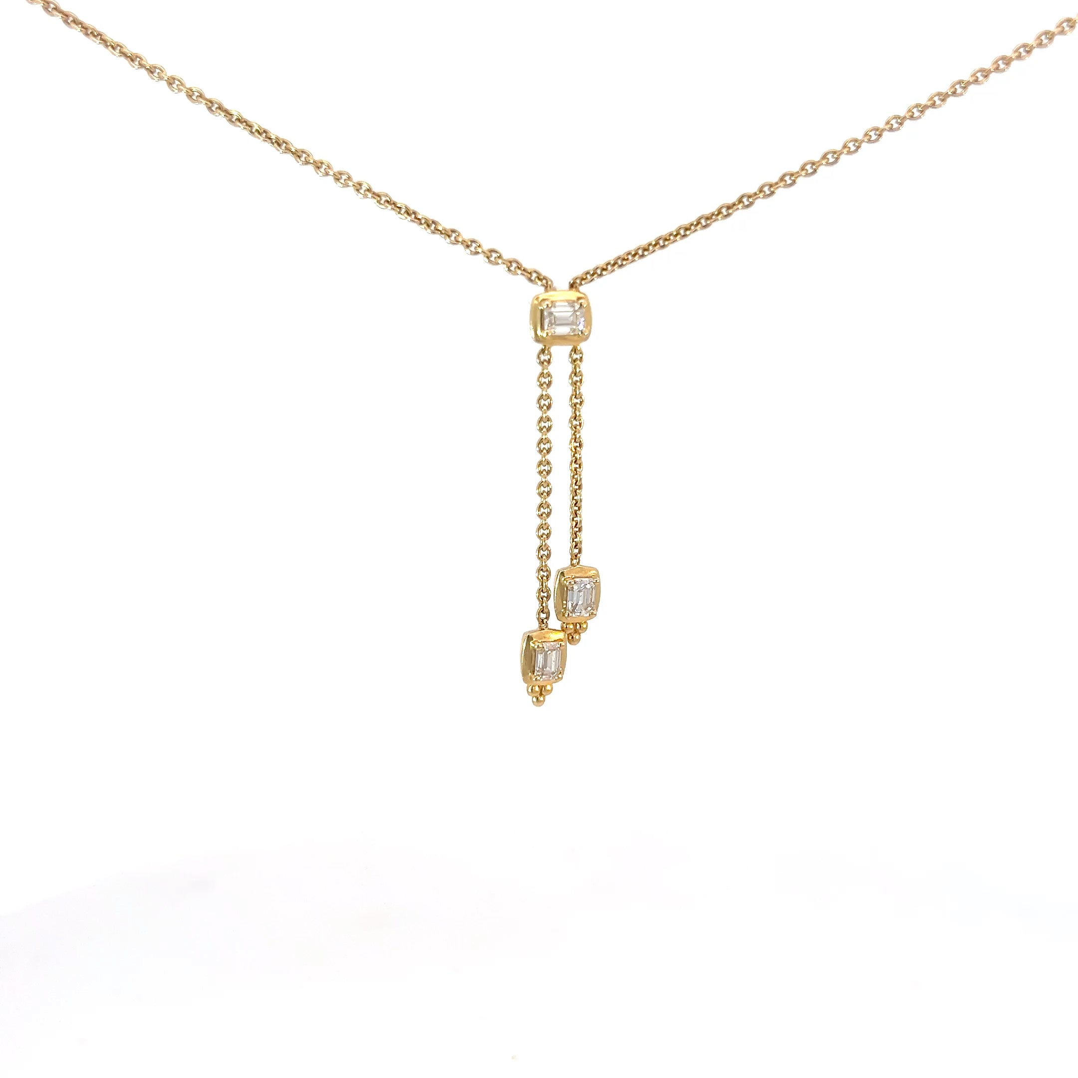 14k Yellow Gold .75ct E VS2 Emerald Cut Diamond Lariat Necklace