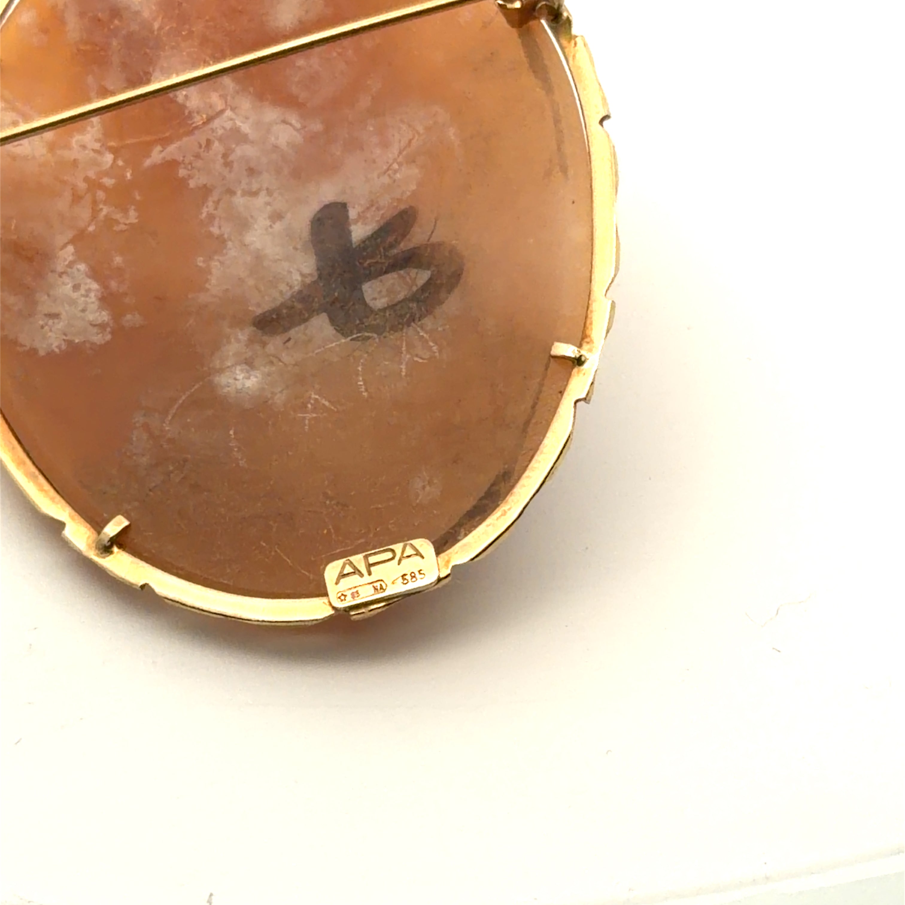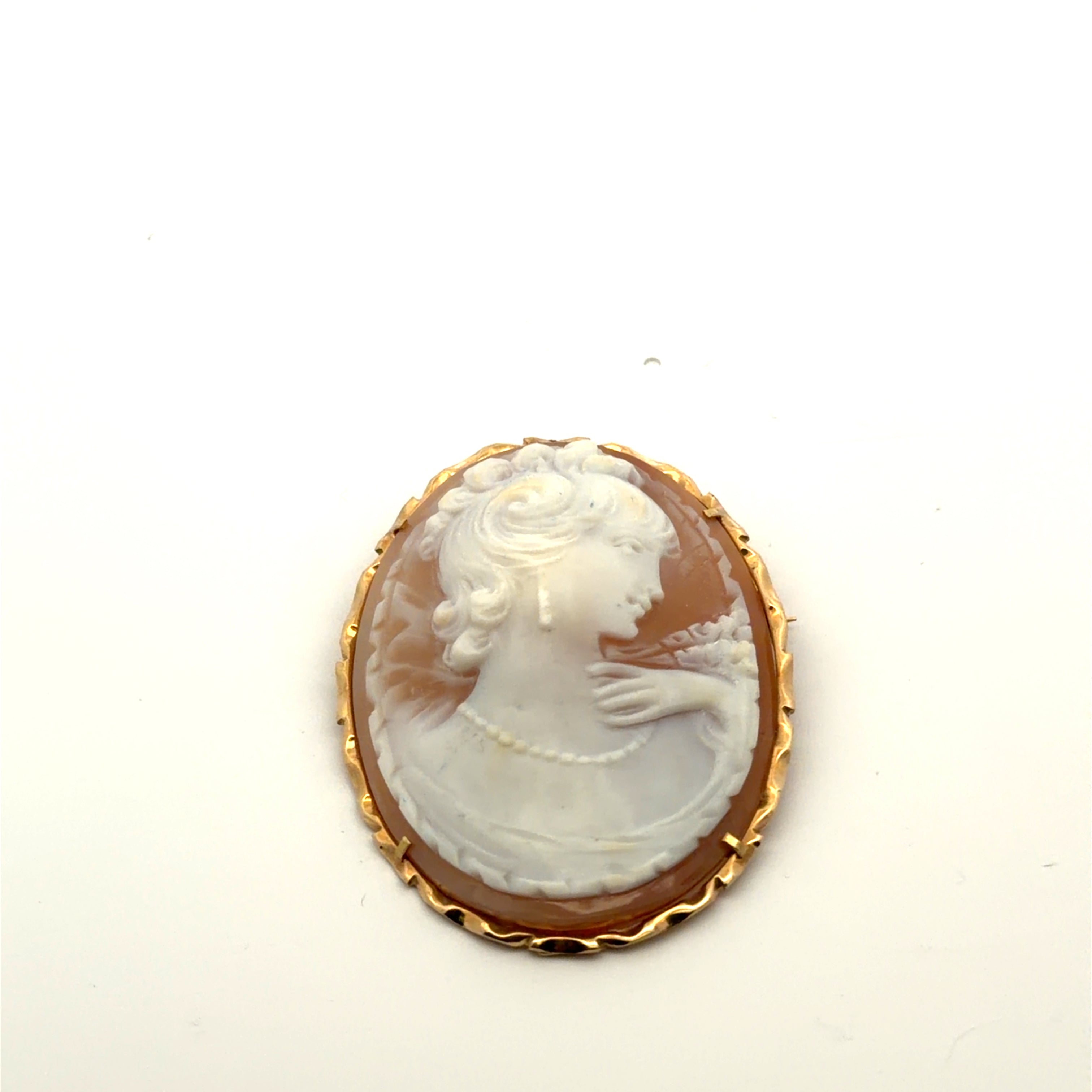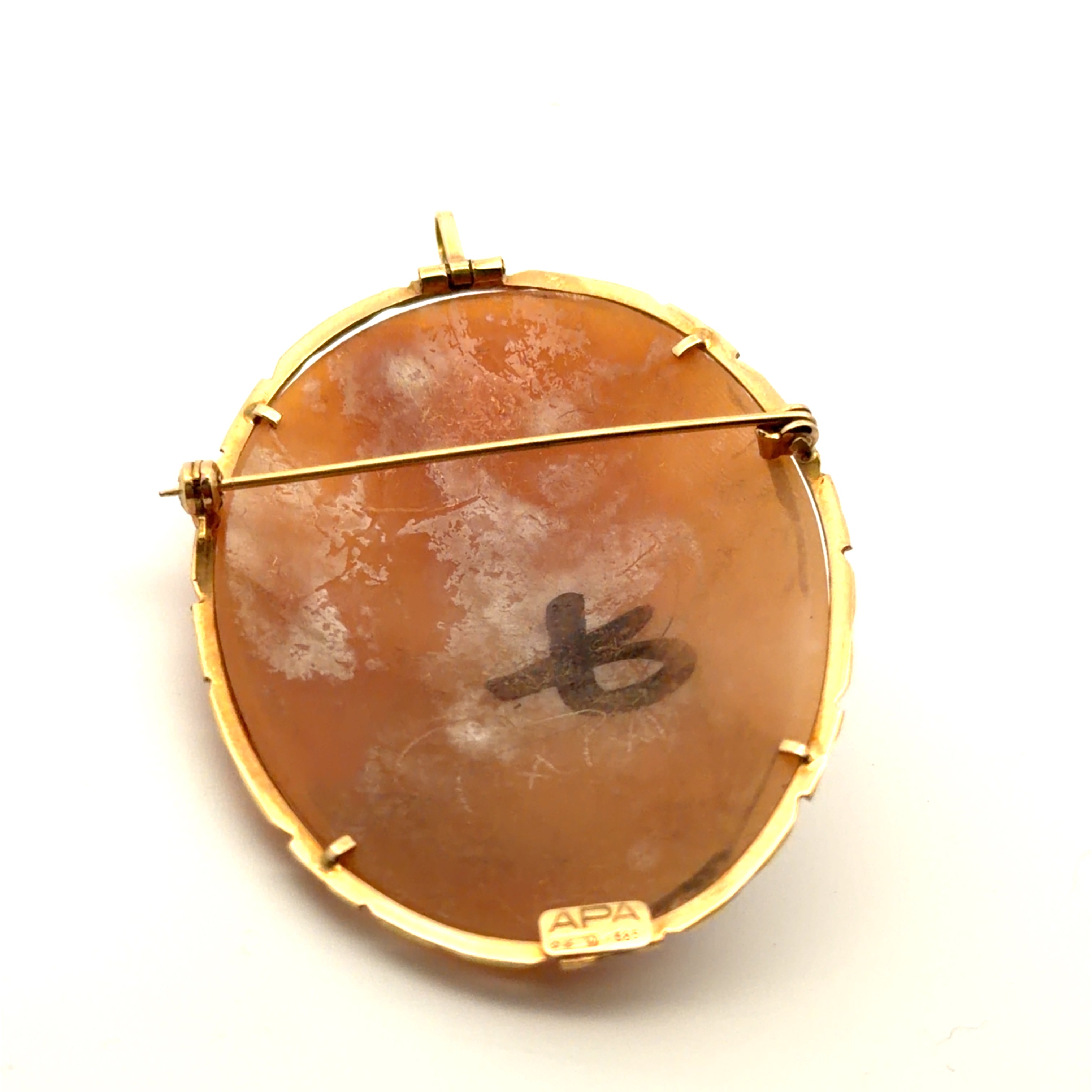 14k Yellow Gold Vintage Cameo Hand-Carved Shell Brooch (Pin) or Necklace (Pendant) 2 x 1 1/2