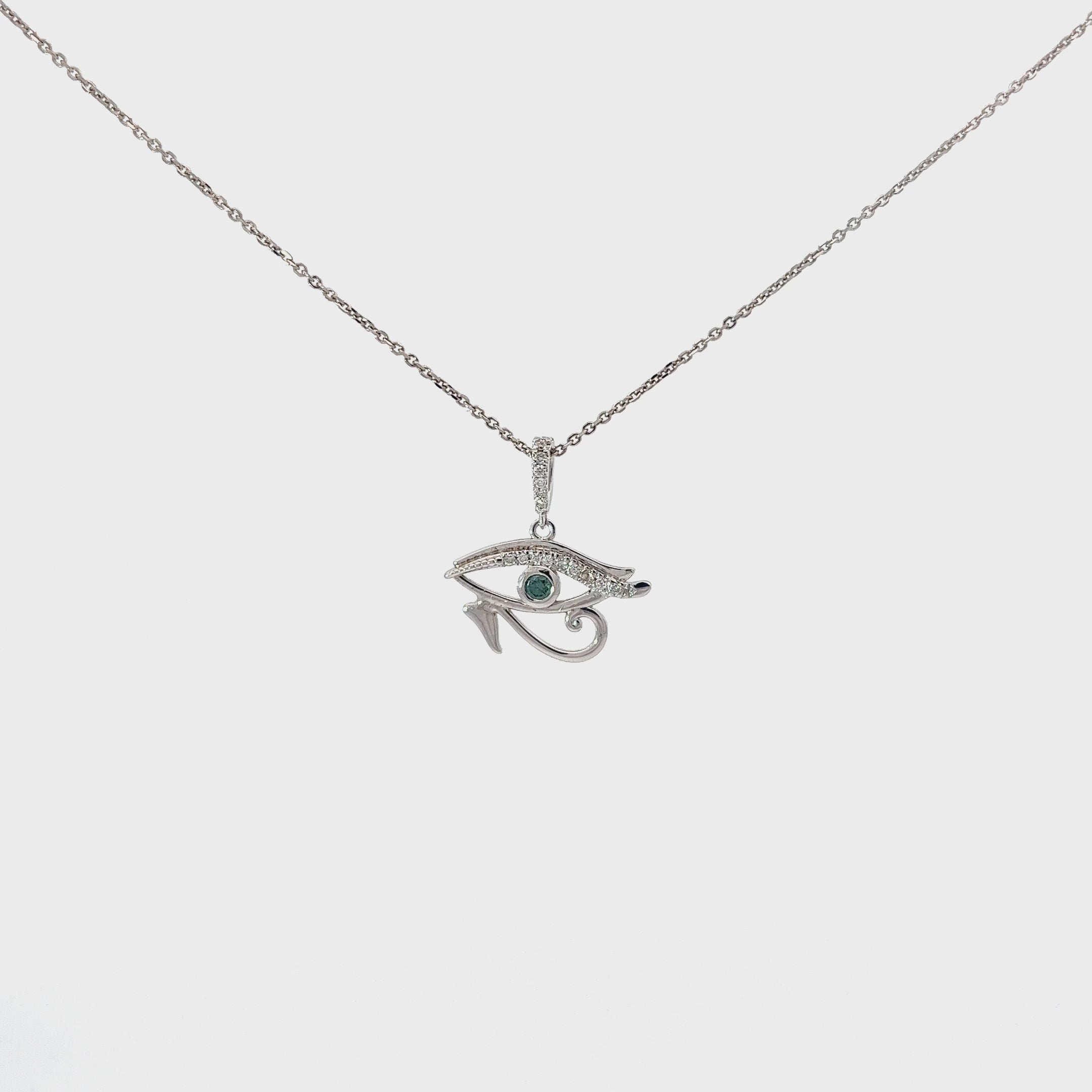 14k White Gold .20ct G SI1 Round Diamond and .20ct Round Blue Diamond Evil Eye Necklace