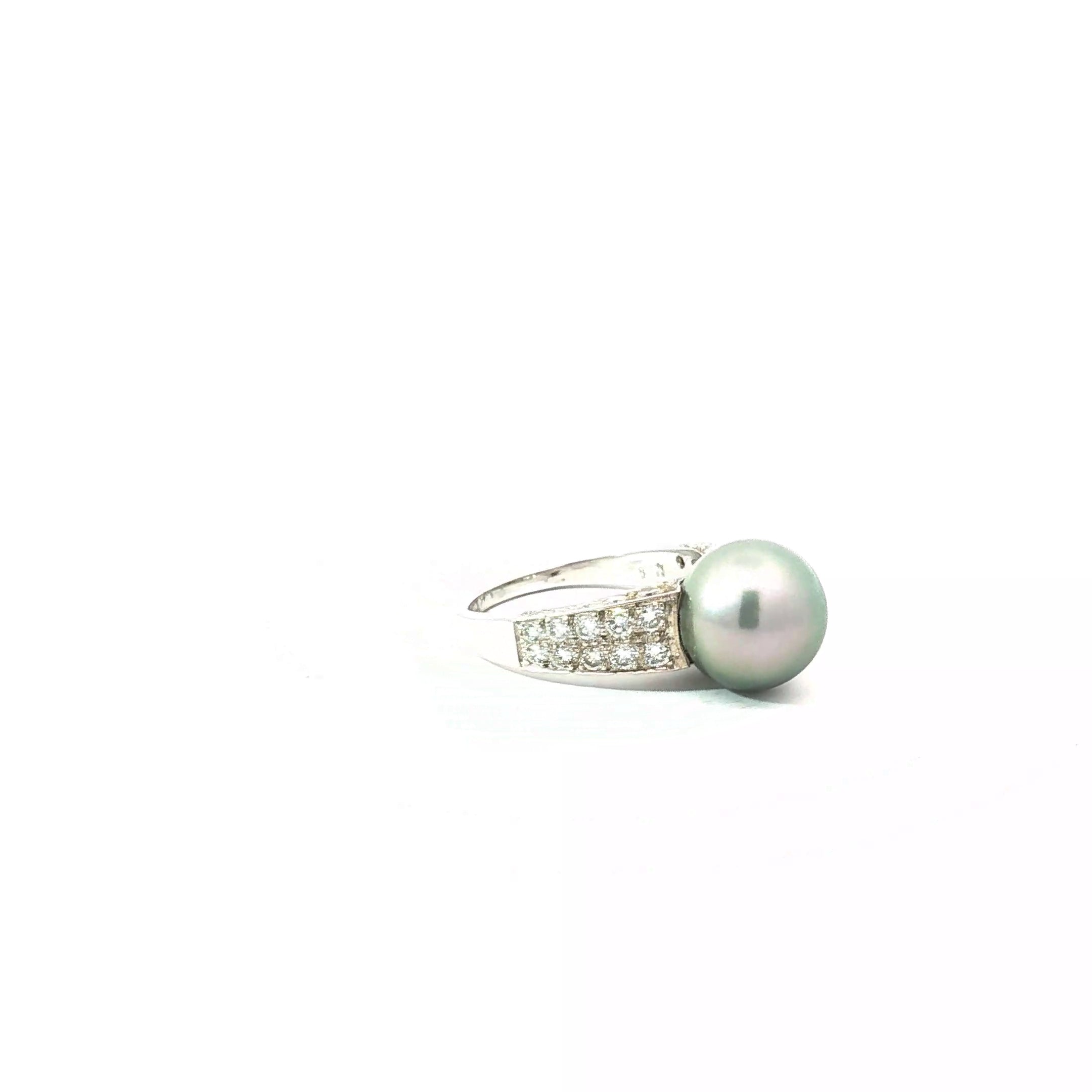 18k White Gold .75ct G VS2 Round Diamond / Fresh Water Silver Pearl 10.5mm Ring