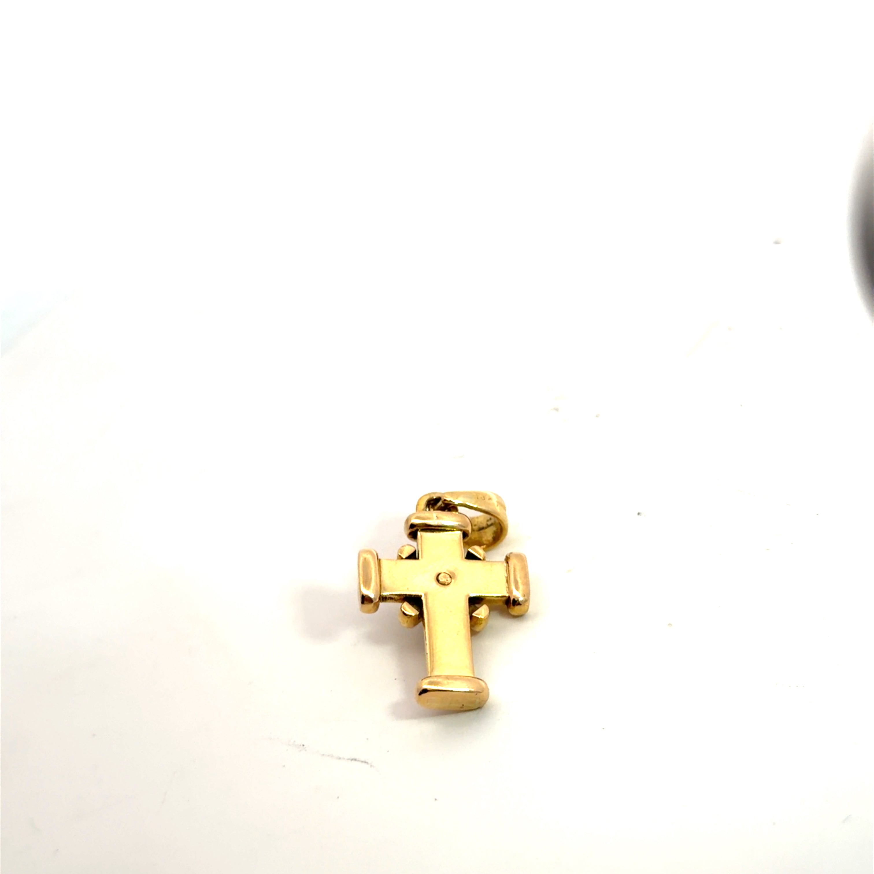 Elevate your collection with this exquisite 18k yellow gold cross pendant, a timeless symbol of faith and elegance. Weighing a substantial 10.1 grams, this piece showcases masterful craftsmanship and luxurious weight that speaks to its premium quality. The striking cabochon ruby at its center adds a rich, jewel-toned focal point that catches light beautifully, making this pendant a versatile statement piece for both everyday wear and special occasions. Perfect for those who appreciate fine jewelry with meaningful design.