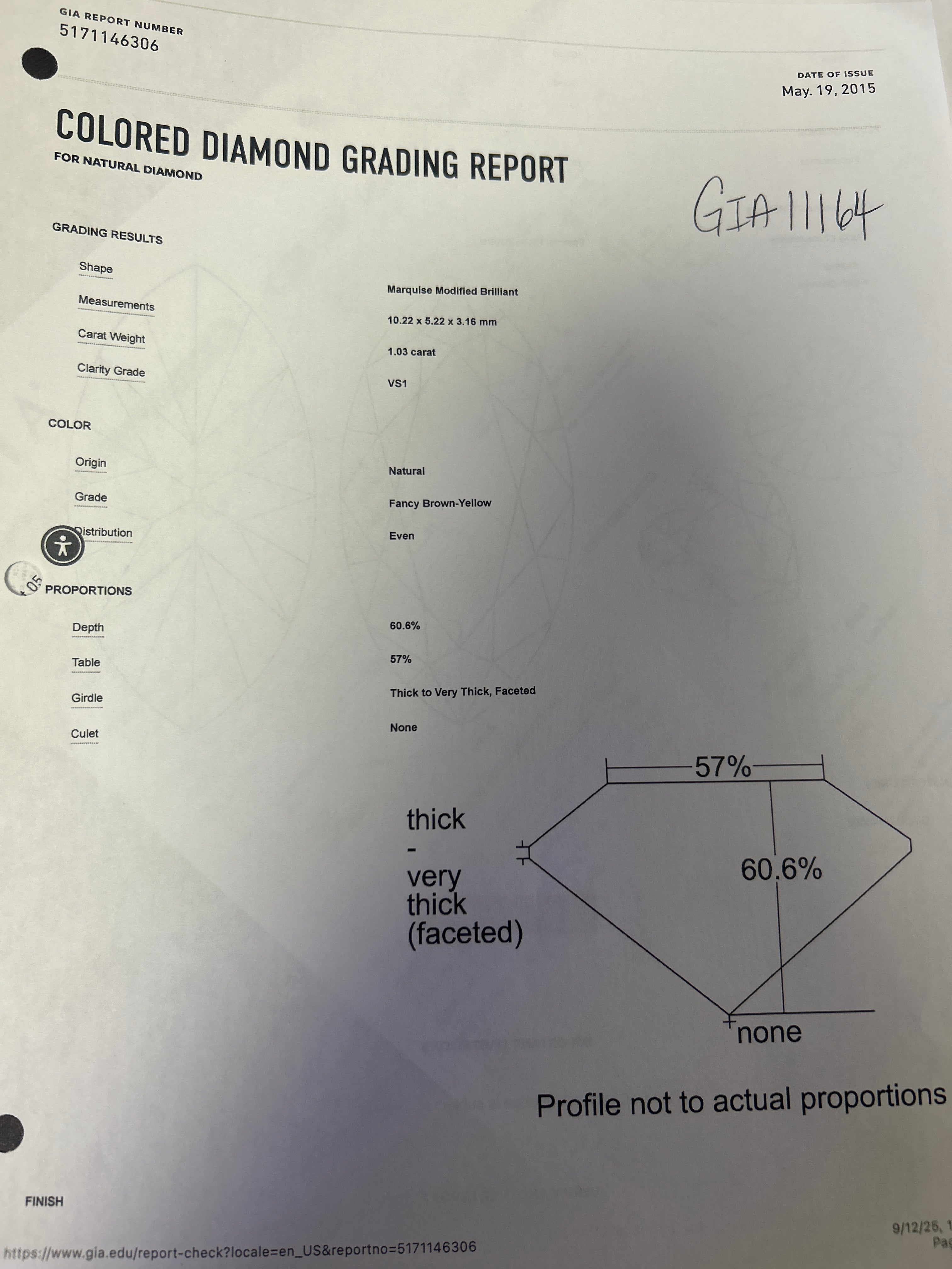 GIA Certified Fancy Brown Marquise shaped Diamond. Measuring 1.03cts and is VS1 in clarity.