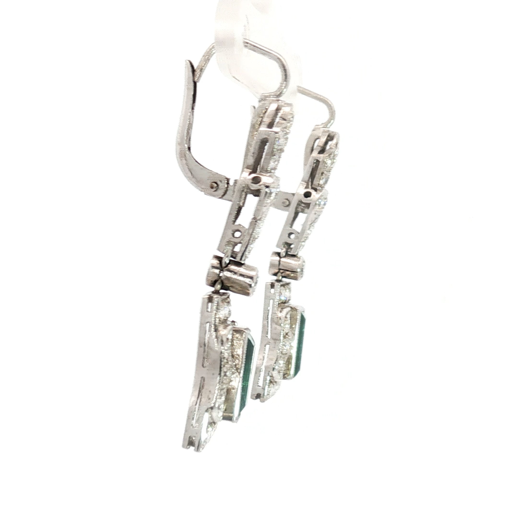 Platinum 2.00ct Colombian Emerald F 1 Octagonal Shape/ 1.50ct G VS2 Round Diamond Dangle Earring Certified By GIA #2233742993