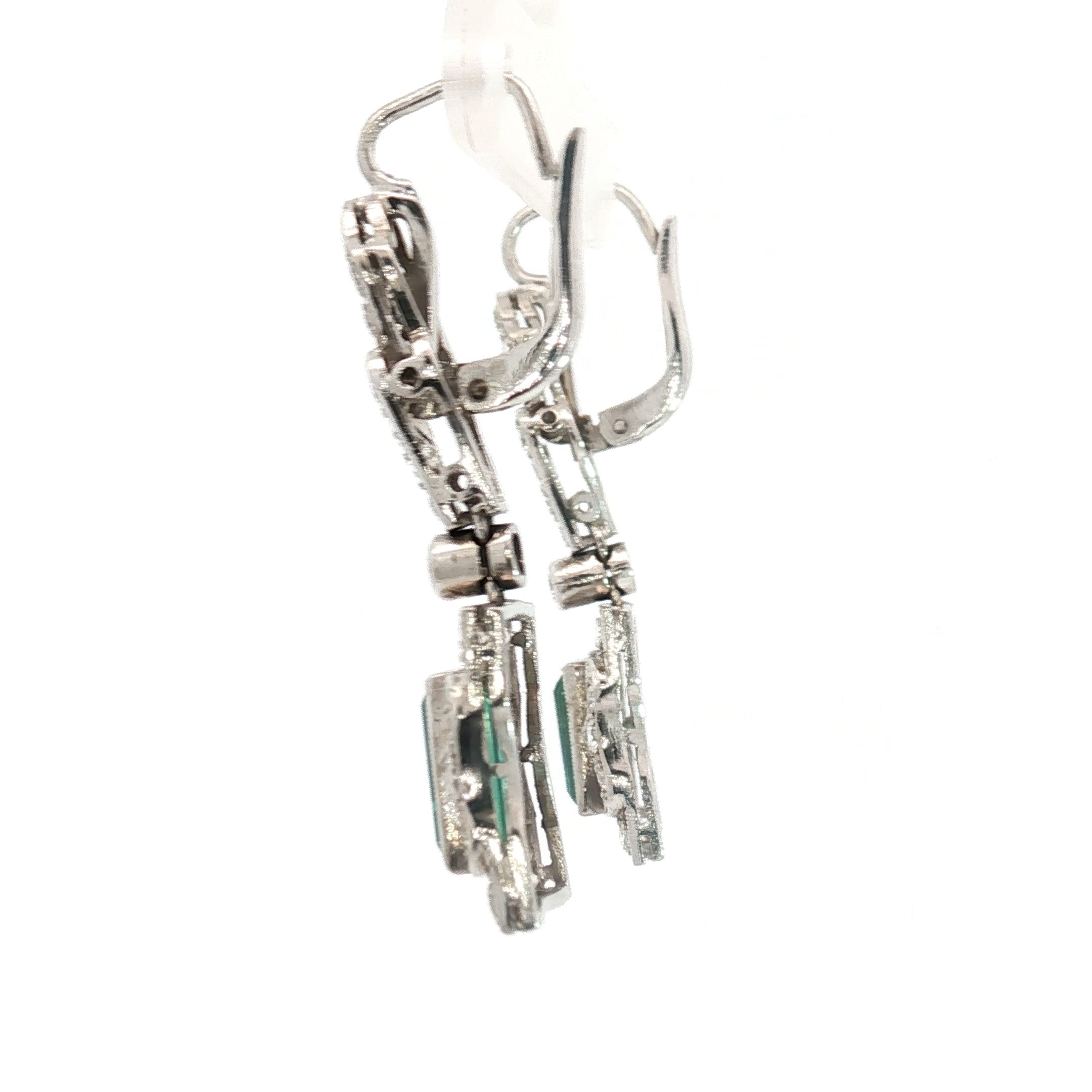 Experience elegance with these platinum dangle earrings featuring a 2.00ct octagonal Colombian emerald paired with 1.50ct G VS2 round diamonds. Certified by GIA (#2233742993), they offer exceptional quality and timeless beauty that enhances any look.