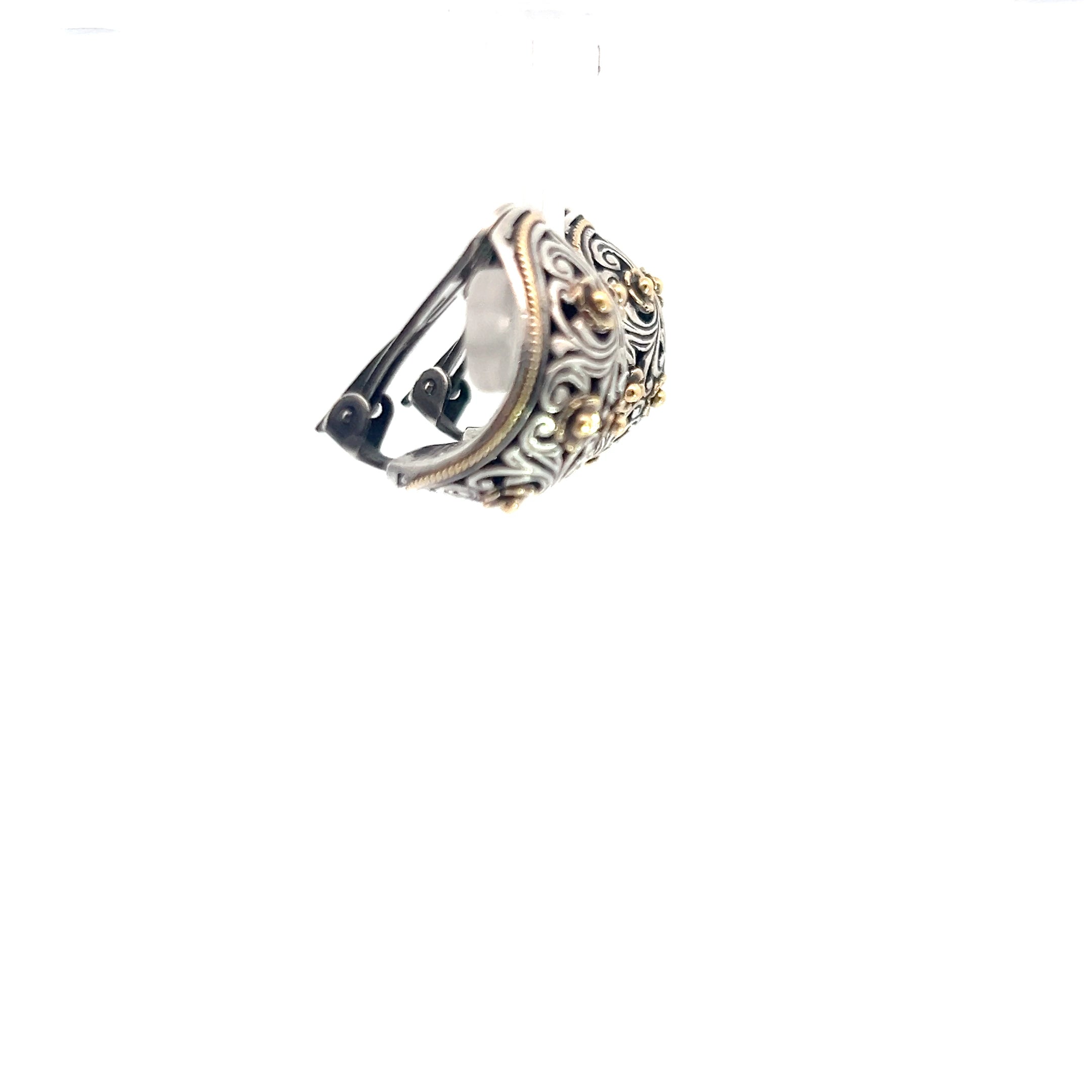 Pre-Loved 18k Yellow Gold / 925 Silver Konstantino Floral Dome Clip Earrings