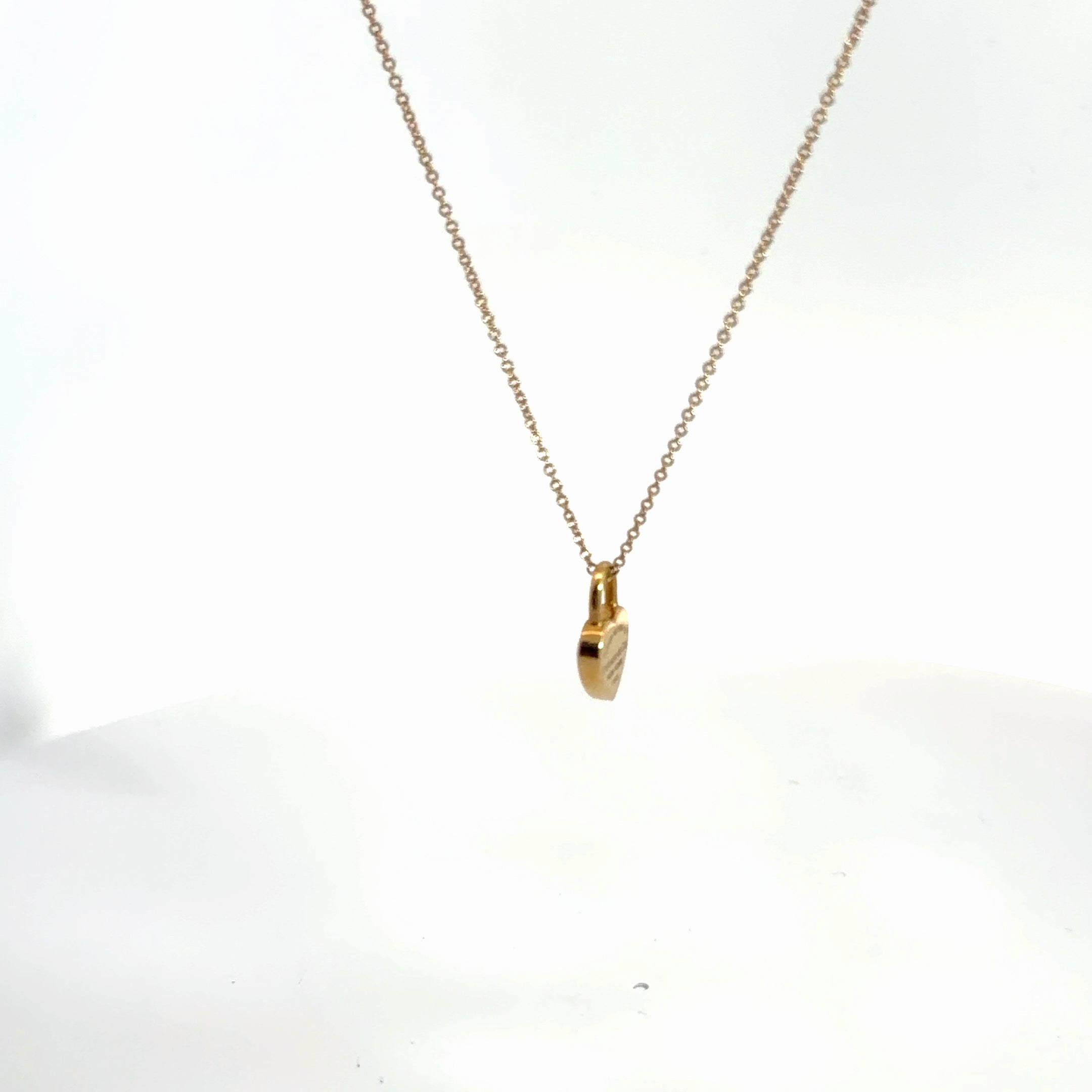 Discover the timeless elegance of this authentic Tiffany & Co. heart lock pendant, crafted in luxurious 18k yellow gold. This pre-loved treasure combines iconic design with enduring quality, offering you the prestige of a luxury brand at a more accessible price point. The delicate heart lock motif symbolizes love and security, making it a meaningful addition to any jewelry collection. Perfect for layering or wearing solo, this piece captures Tiffany's signature sophistication and craftsmanship that has enchanted jewelry lovers for generations.