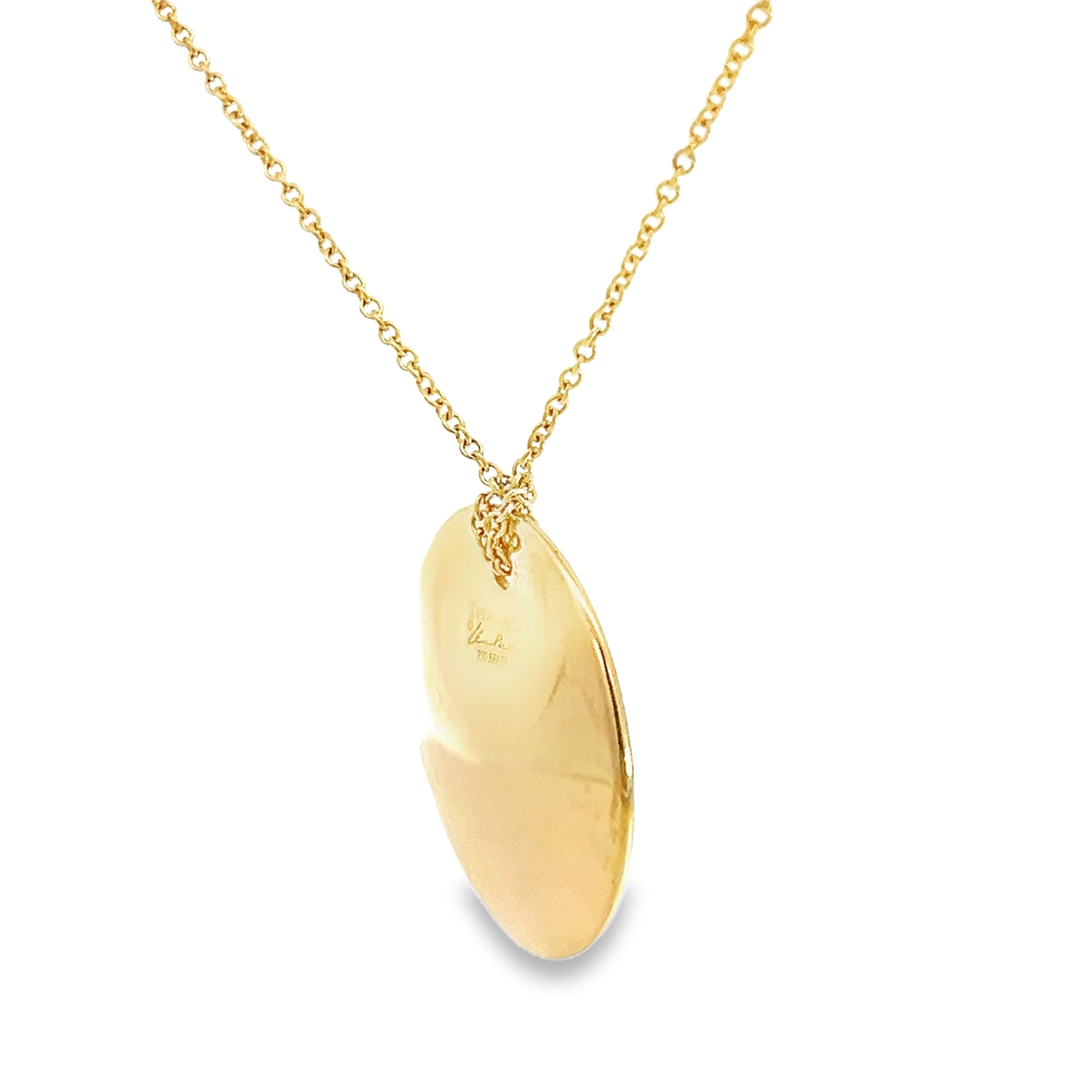 Elevate your style with this exquisite pre-owned Tiffany & Co. Elsa Peretti necklace, featuring a timeless 18k yellow gold disc pendant that adds a touch of elegant sophistication to any outfit.