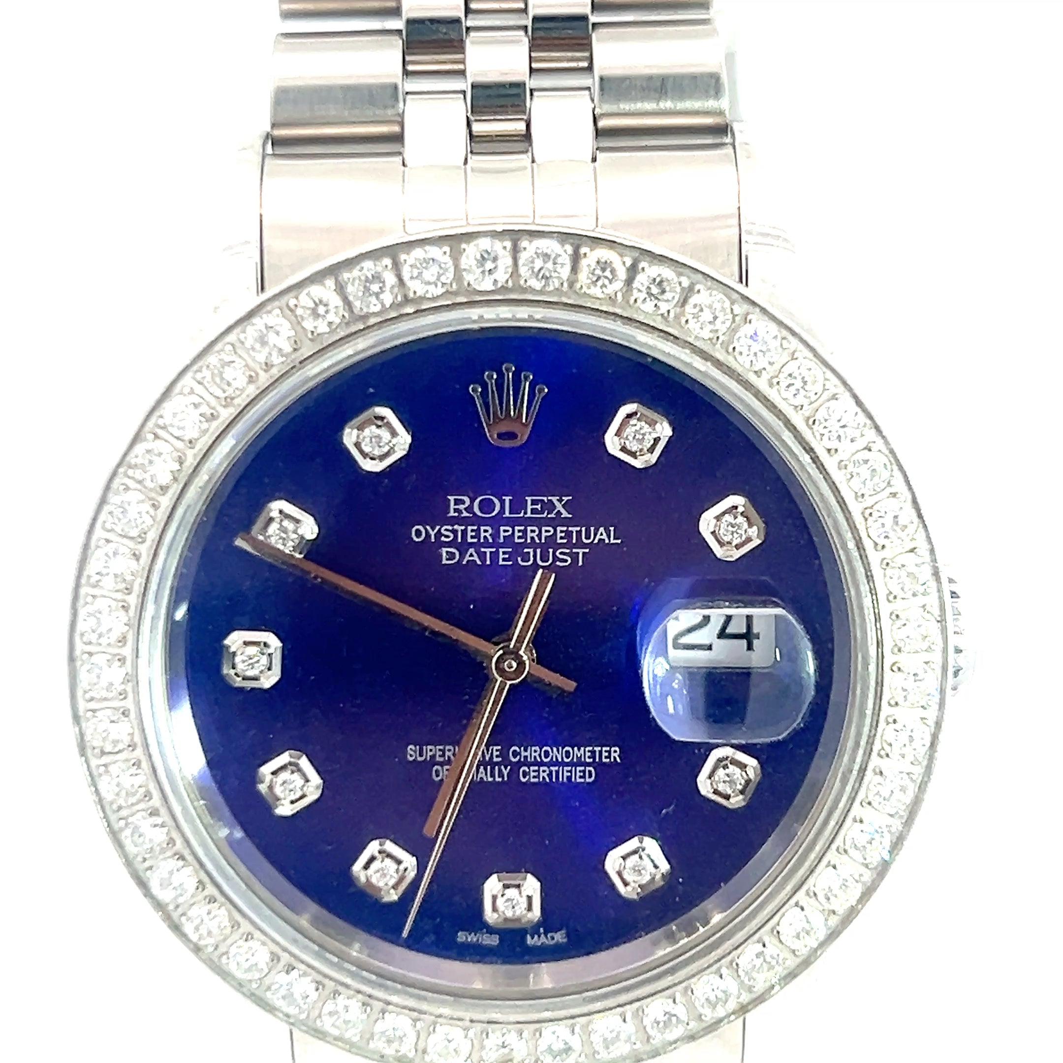 Pre-Owed Rolex Date Just/ 36mm/ Diamond Bezel After Market Blue Diamond Dial
