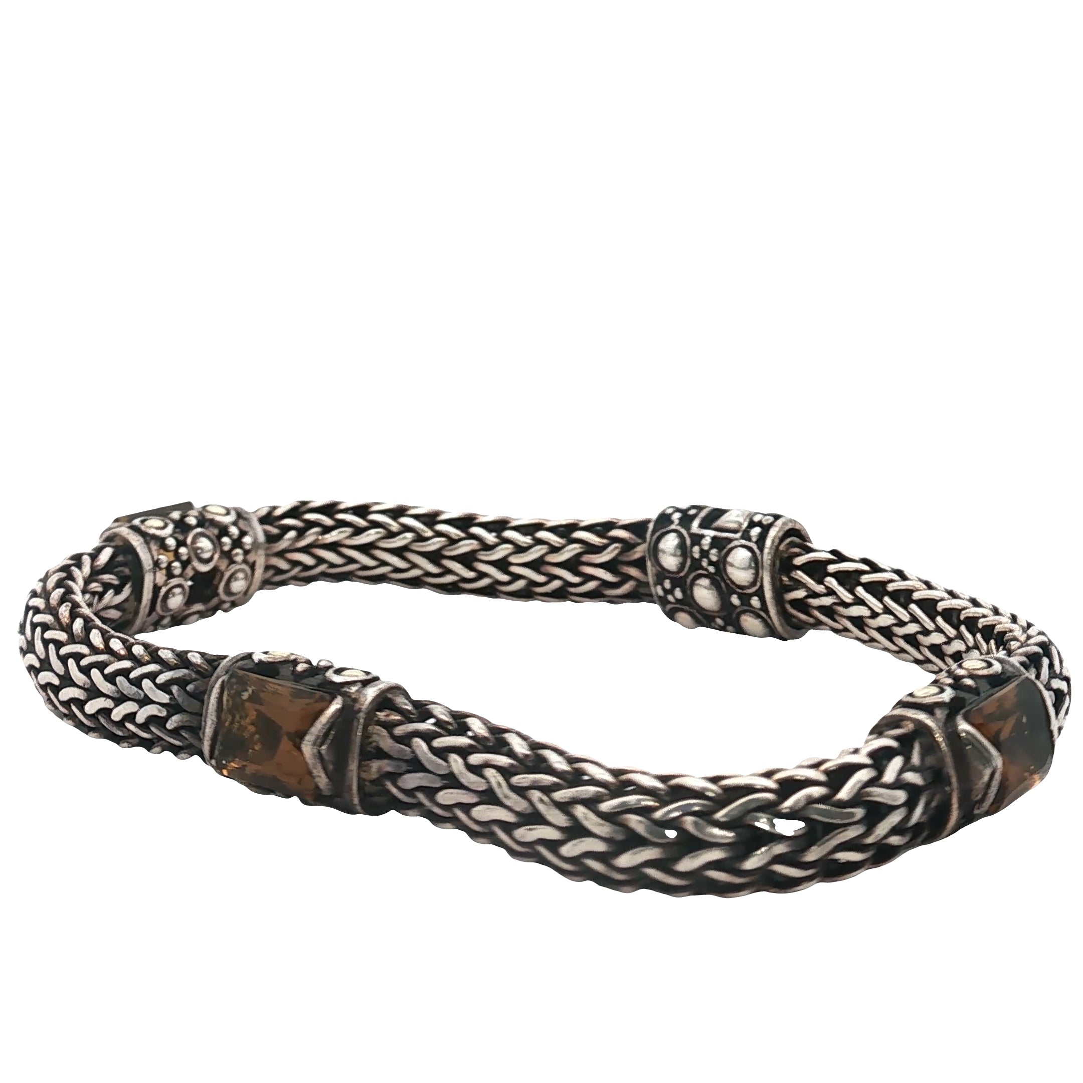 Pre-Owned Batu Sari 18k Yellow Gold and Sterling Silver with (3) Citrine Stone Bracelet 8"inch Size M