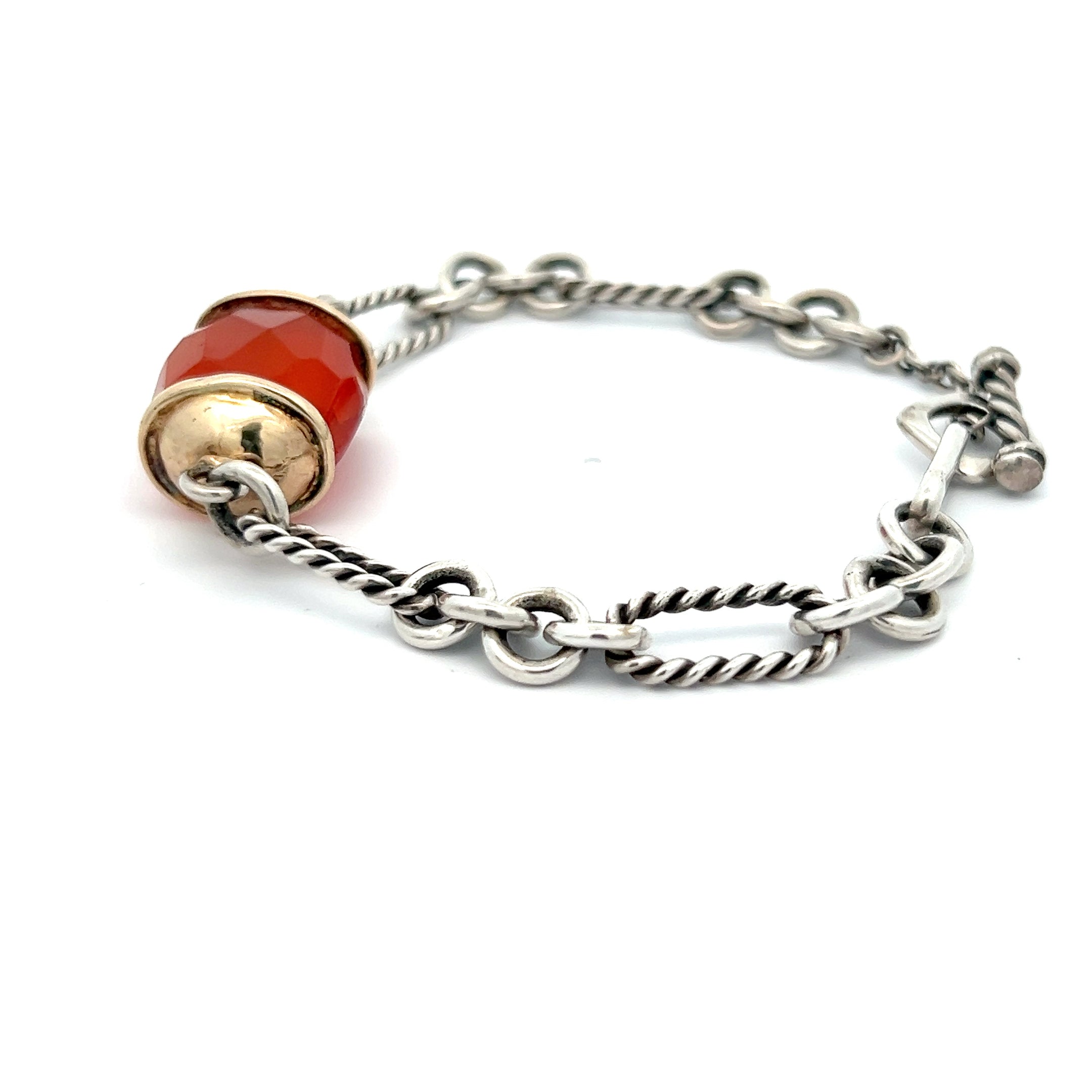 Pre-Owned John Hardy Sterling Silver and 14k Yellow Gold with Carnelian 8 inch Toggle Clasp Bracelet/ Figuero Link (Rare)