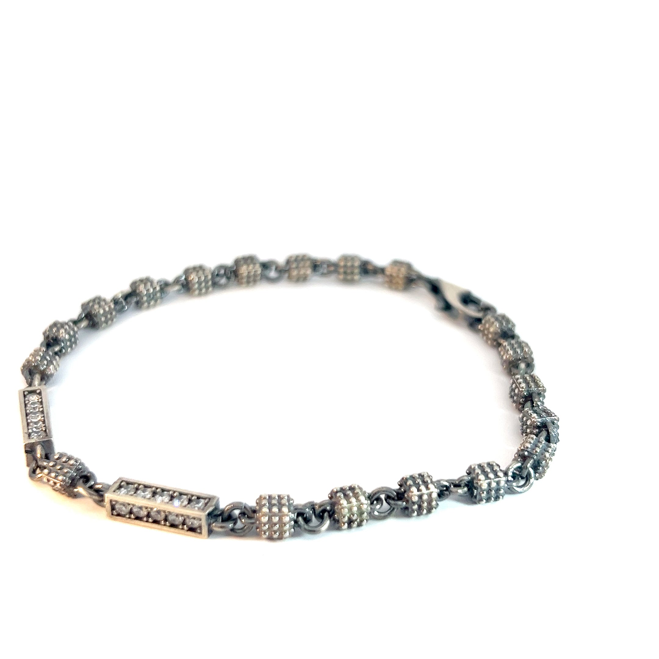 Experience the luxurious elegance of our Sterling Silver 13.8 Gram Two Square's Round Cubic Zirconium Stone Men's Bracelet.